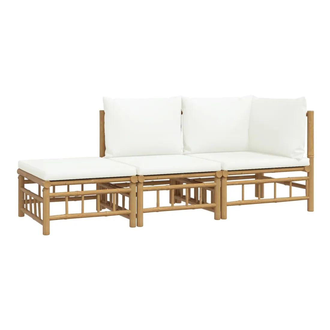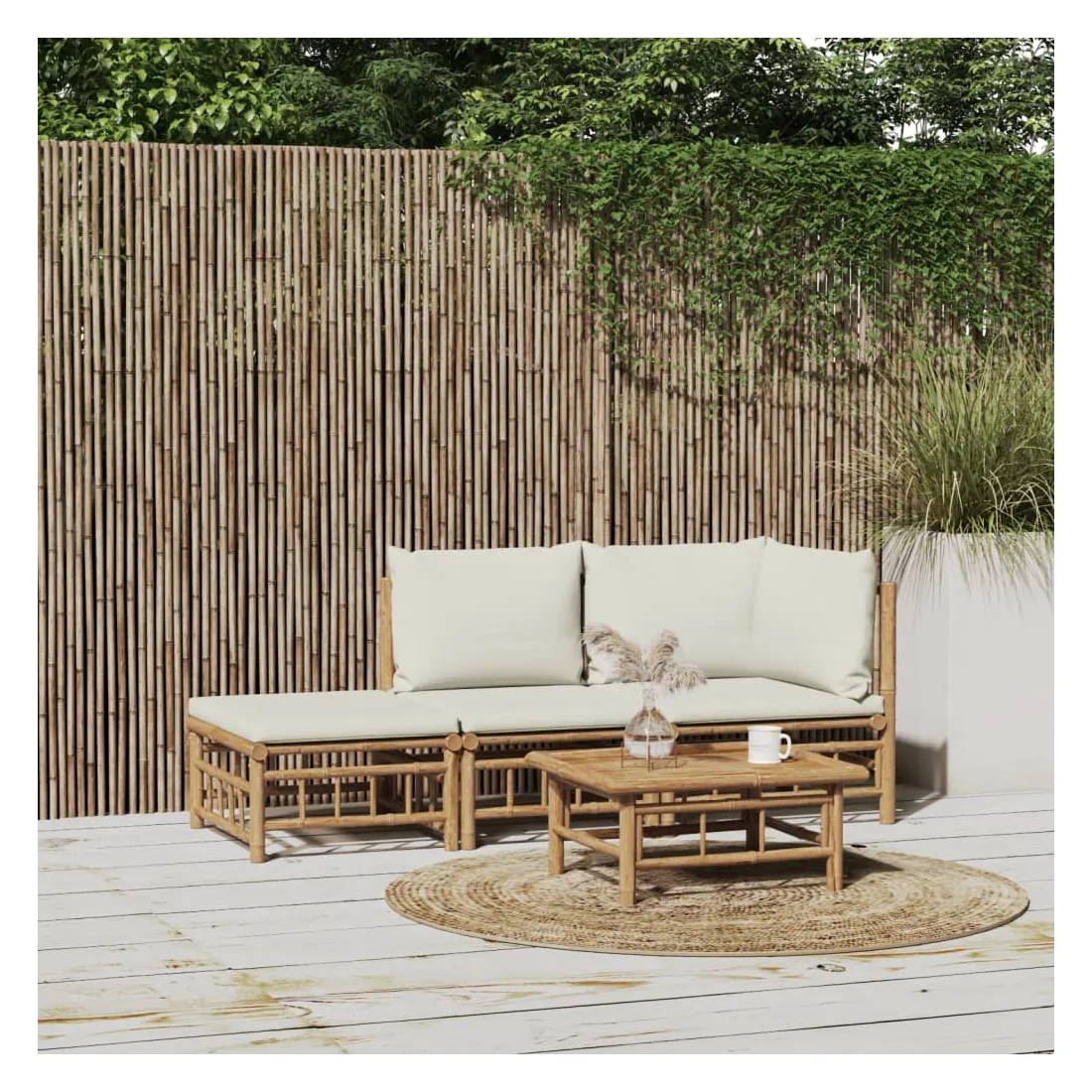 Savourez une tasse de café ou de thé par beau temps dans votre espace extérieur avec cet élégant ensemble de salon de jardin en bambou ! Matériau durable : le bambou est connu pour sa flexibilité et sa dureté. Les meubles en bambou sont une bonne option lorsque vous voulez des meubles d'extérieur solides fabriqués à partir de matériaux naturels.Expérience d'assise confortable : le dossier et l'accoudoir ajoutent un confort d'assise supplémentaire pour l'ensemble de canapé de jardin. De plus, les coussins d'assise et de dossier moelleux offrent un confort pendant votre temps d'assise.Table pratique : la table robuste est parfaite pour placer des repas, des boissons et d'autres objets décoratifs.Conception modulaire : l'ensemble de salon est flexible et facile à déplacer, vous pouvez donc le combiner avec d'autres segments modulaires dans la boutique en ligne pour créer vos propres configurations d'ensemble de salon d'extérieur ! Remarque :Pour que vos meubles d'extérieur restent beaux, nous vous recommandons de les protéger avec une housse imperméable.Bon à savoir :Pour faciliter au maximum le montage, chaque produit est livré avec des instructions.