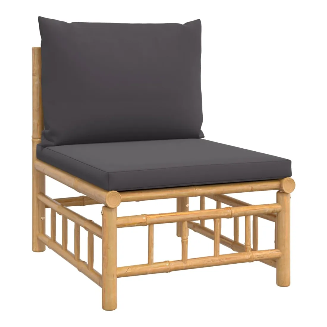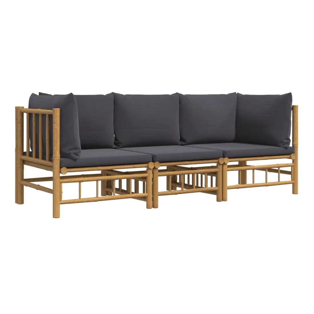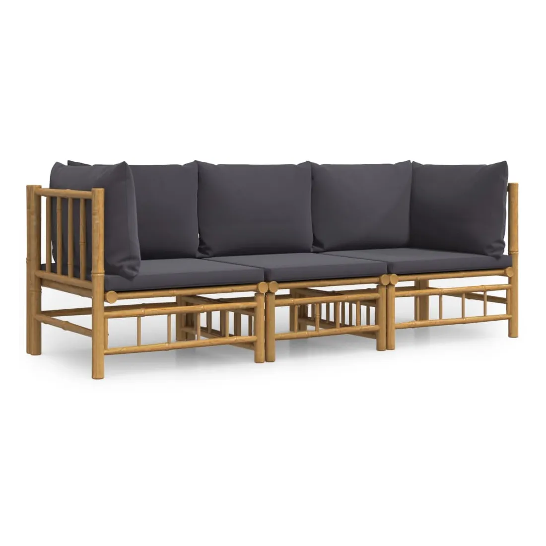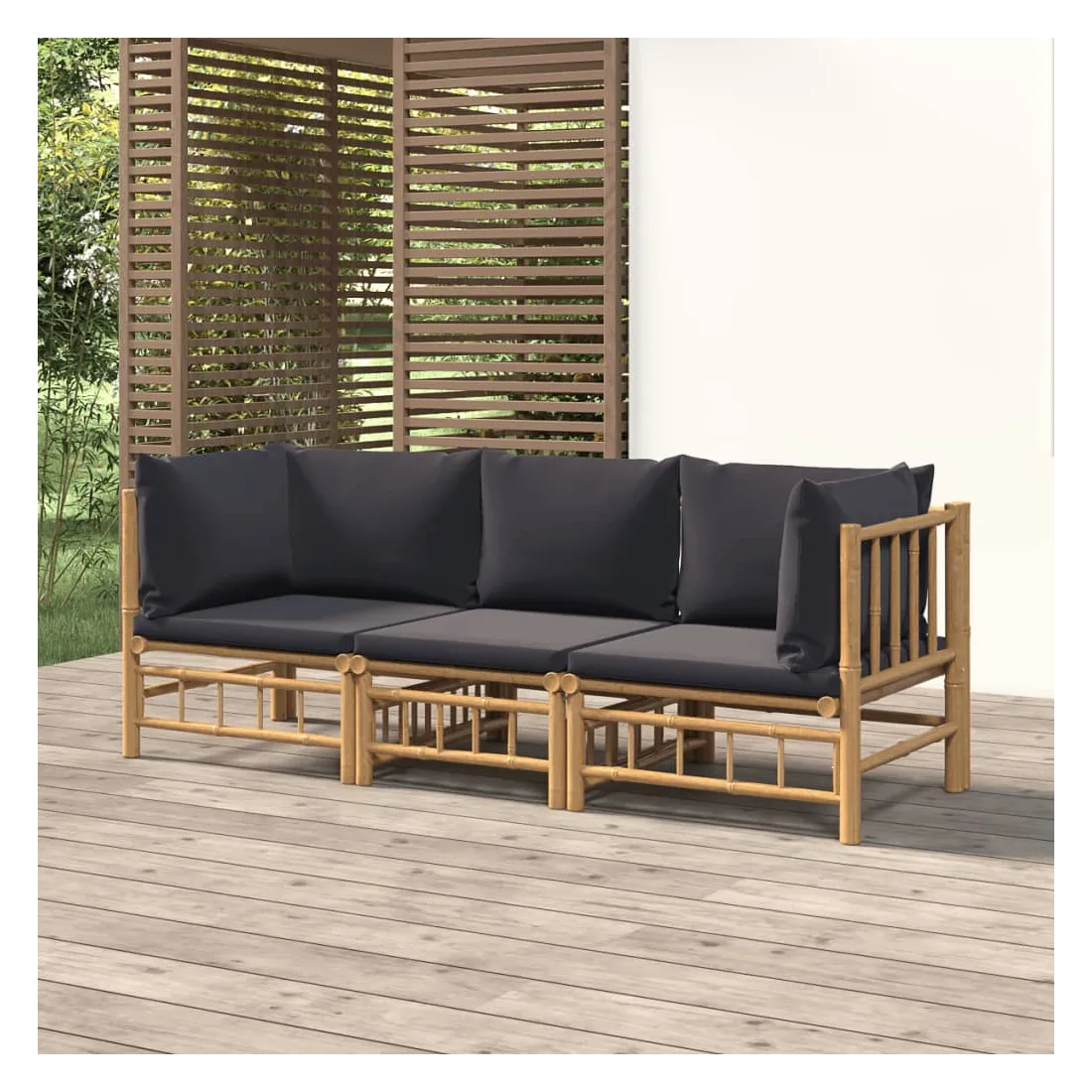 Salon de jardin 3 pcs avec coussins gris foncé bambou
