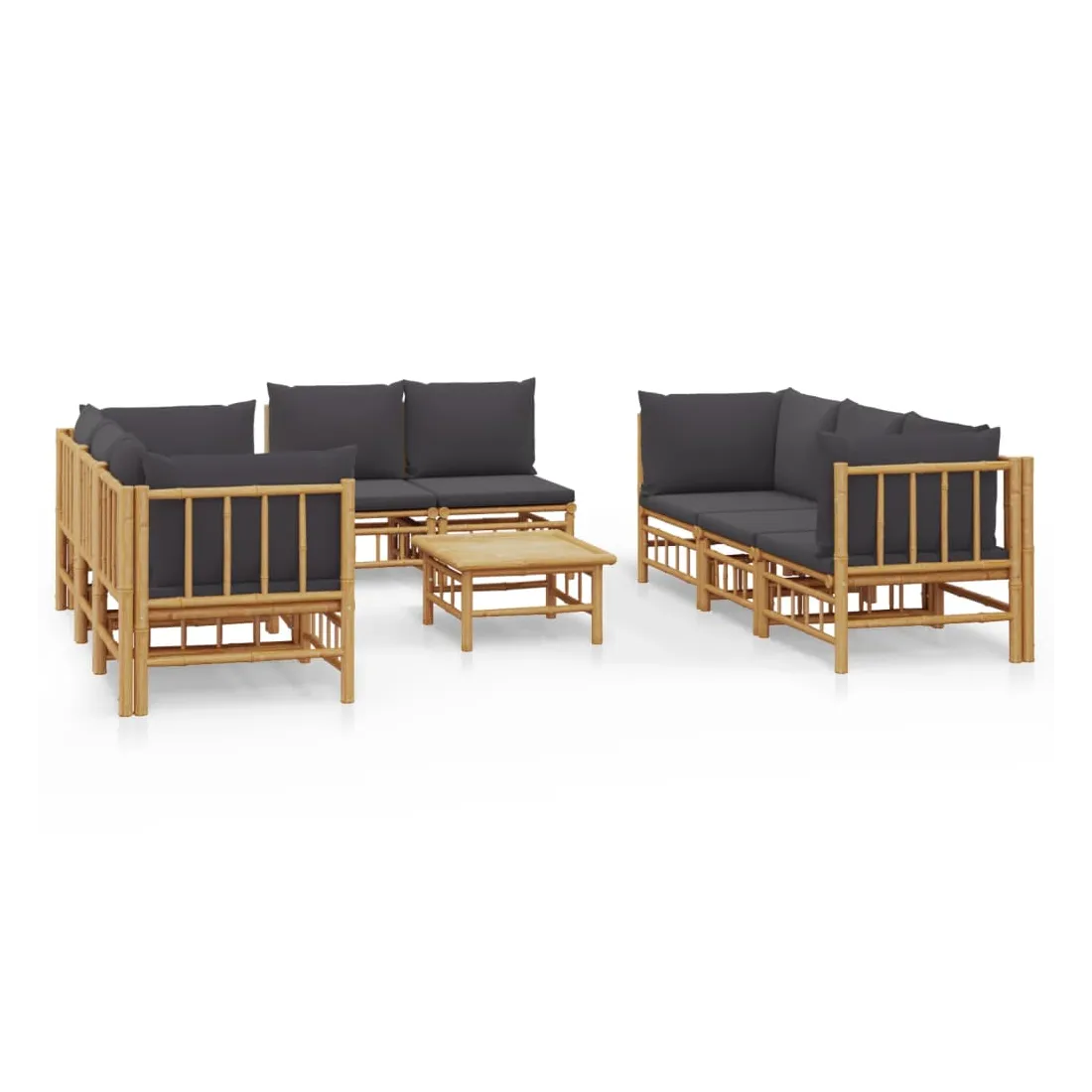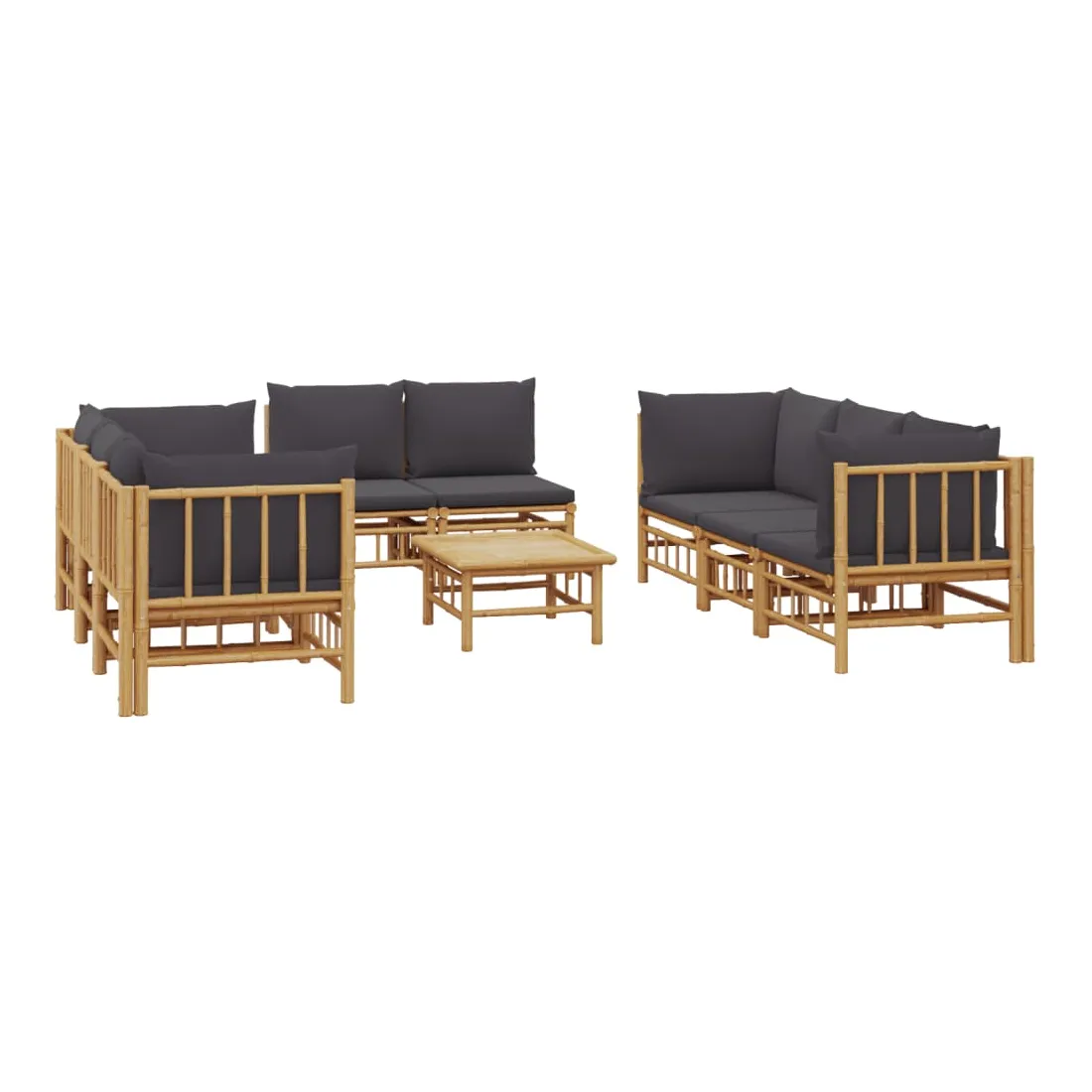 Salon de jardin 9 pcs avec coussins gris foncé bambou