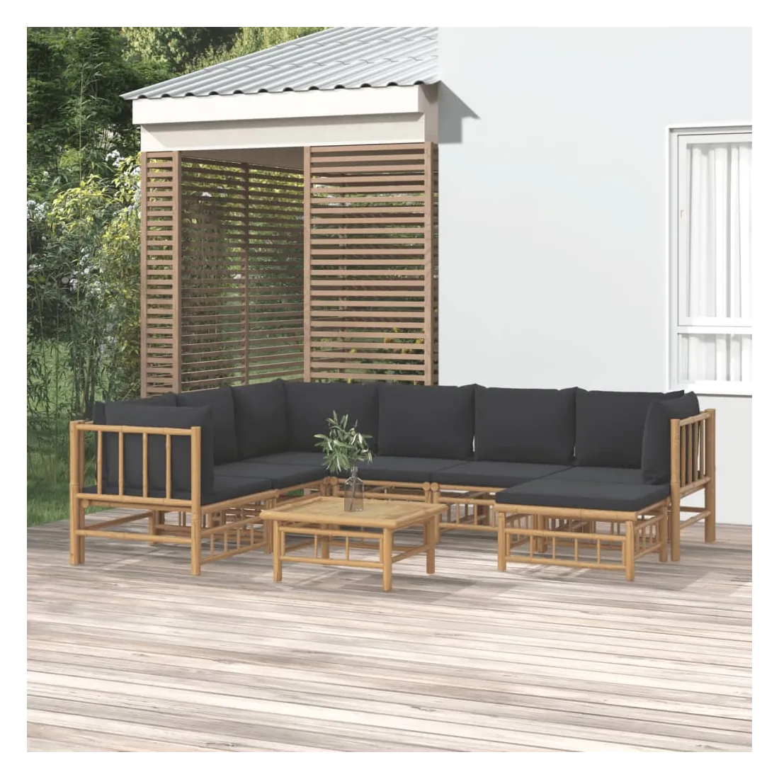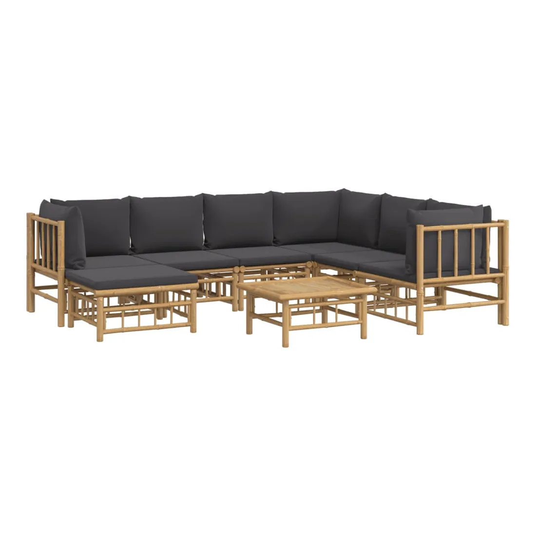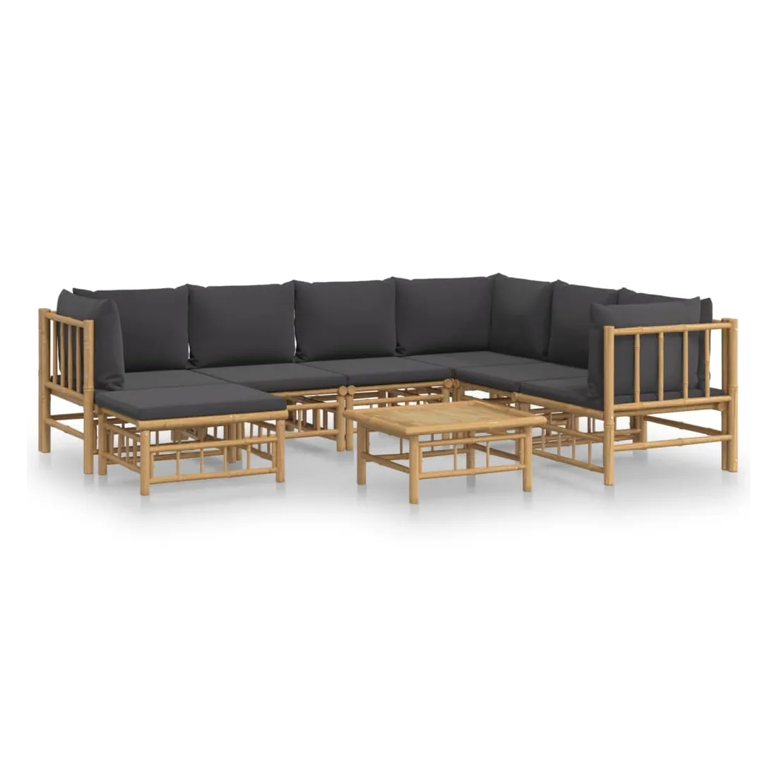 Salon de jardin 8 pcs avec coussins gris foncé bambou