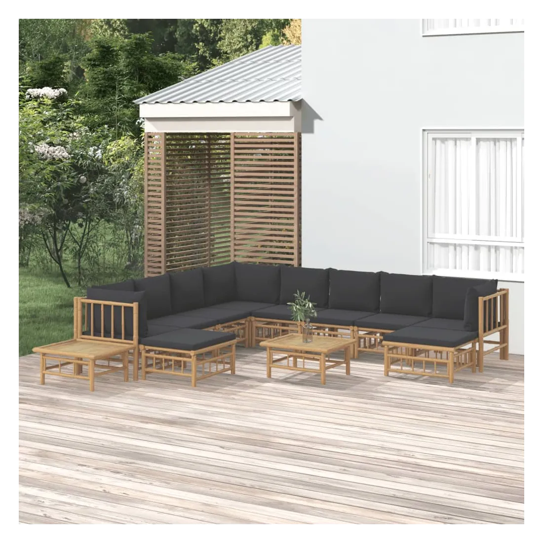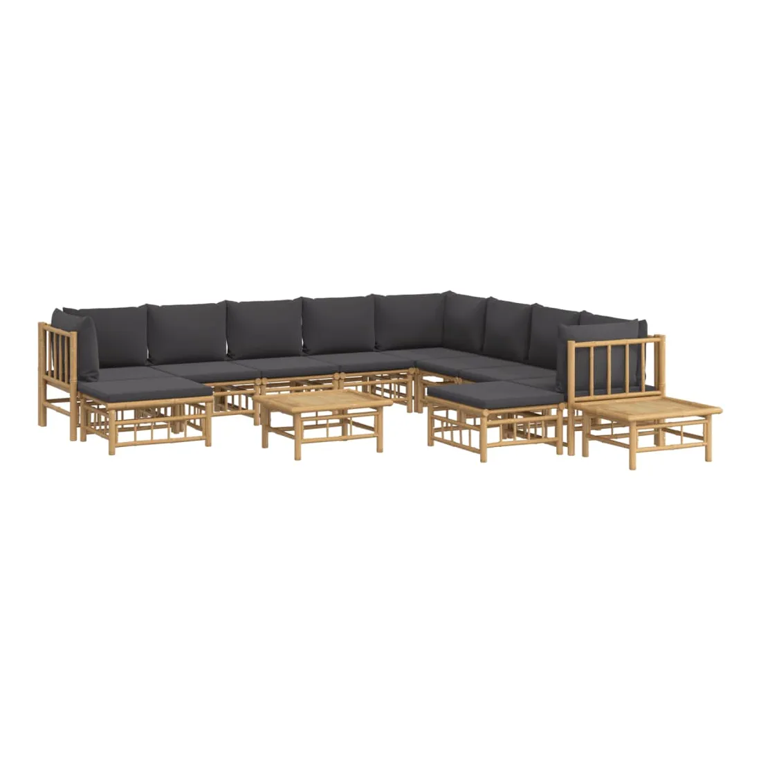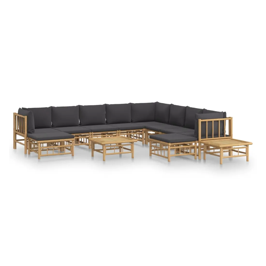 Salon de jardin 12 pcs avec coussins gris foncé bambou