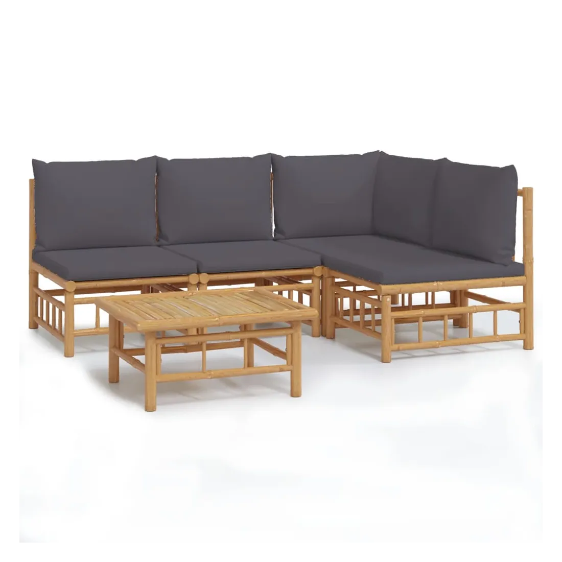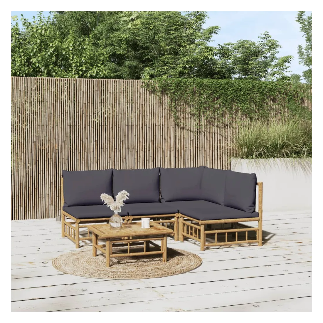 Salon de jardin 5 pcs avec coussins gris foncé bambou
