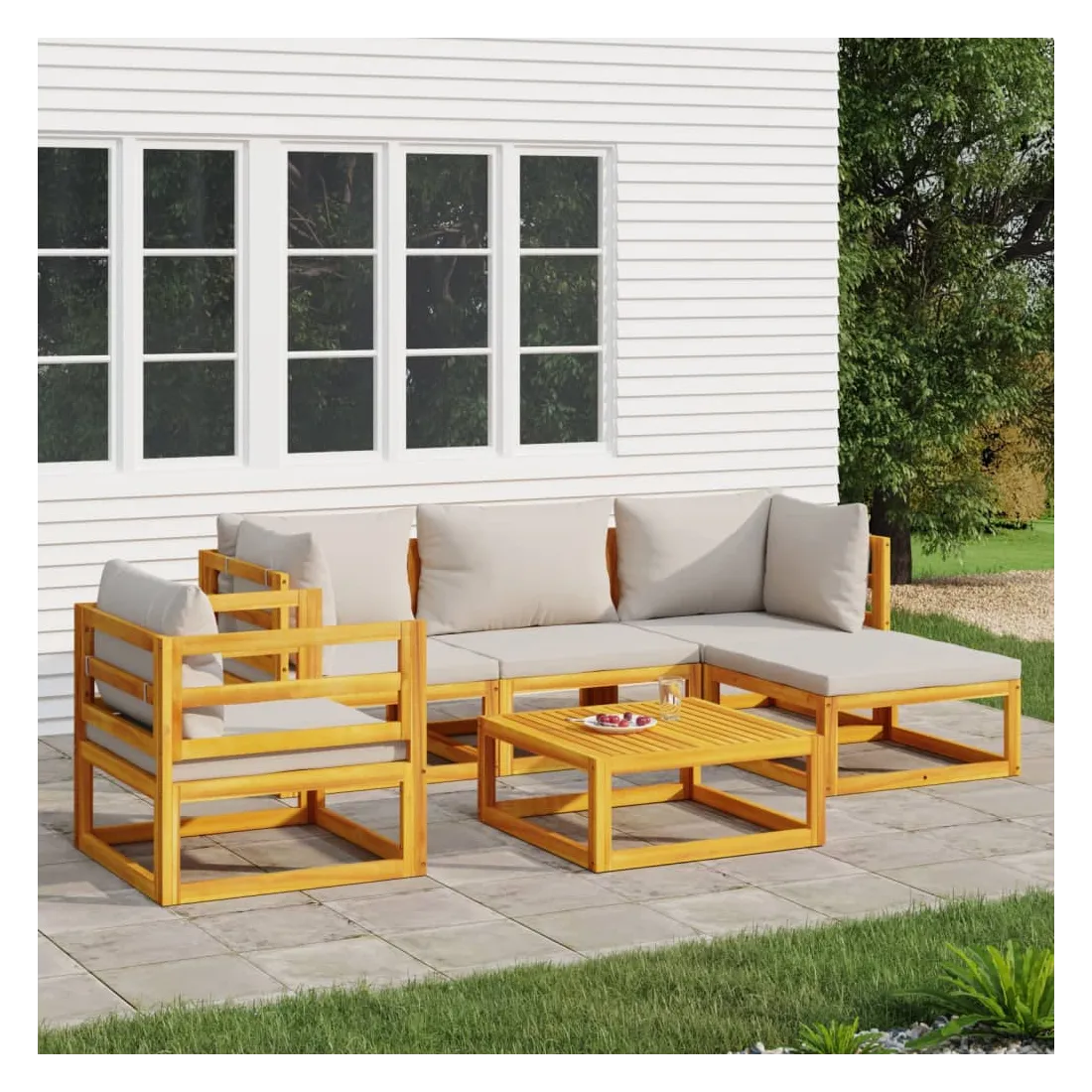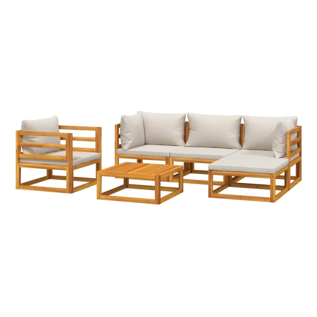 Savourez une tasse de café ou de thé par beau temps dans votre espace extérieur avec cet élégant ensemble de salon de jardin en bois ! Bois d'acacia massif : cet ensemble de meubles de jardin est en bois d'acacia massif. Le bois d'acacia solide est un beau matériau naturel. Le bois d'acacia est un bois dur tropical, qui est dense, robuste et durable.Expérience d'assise confortable : le dossier ajoute un confort d'assise supplémentaire au canapé. De plus, les coussins bien rembourrés offrent du confort pendant votre temps d'assise.Table pratique : la table robuste est parfaite pour placer des repas, des boissons et d'autres objets décoratifs.Design modulaire : le canapé de jardin est flexible et facile à déplacer, vous pouvez donc le combiner avec d'autres segments modulaires de la boutique en ligne pour créer vos propres configurations de salon de jardin ! Bon à savoir :Pour faciliter au maximum le montage, chaque produit est livré avec des instructions. Remarque :Pour que vos meubles d'extérieur restent beaux, nous vous recommandons de les protéger avec une housse imperméable.