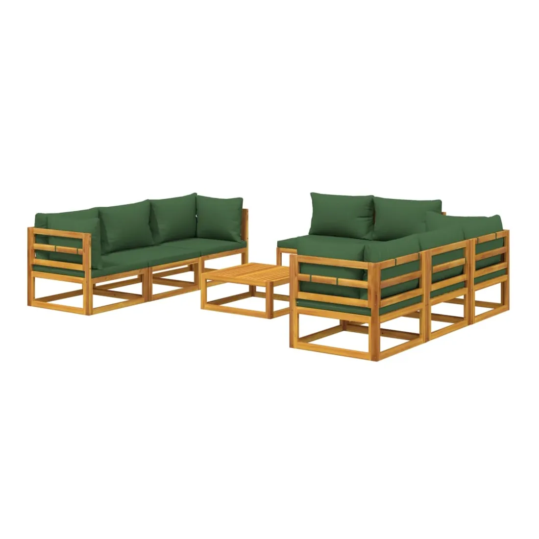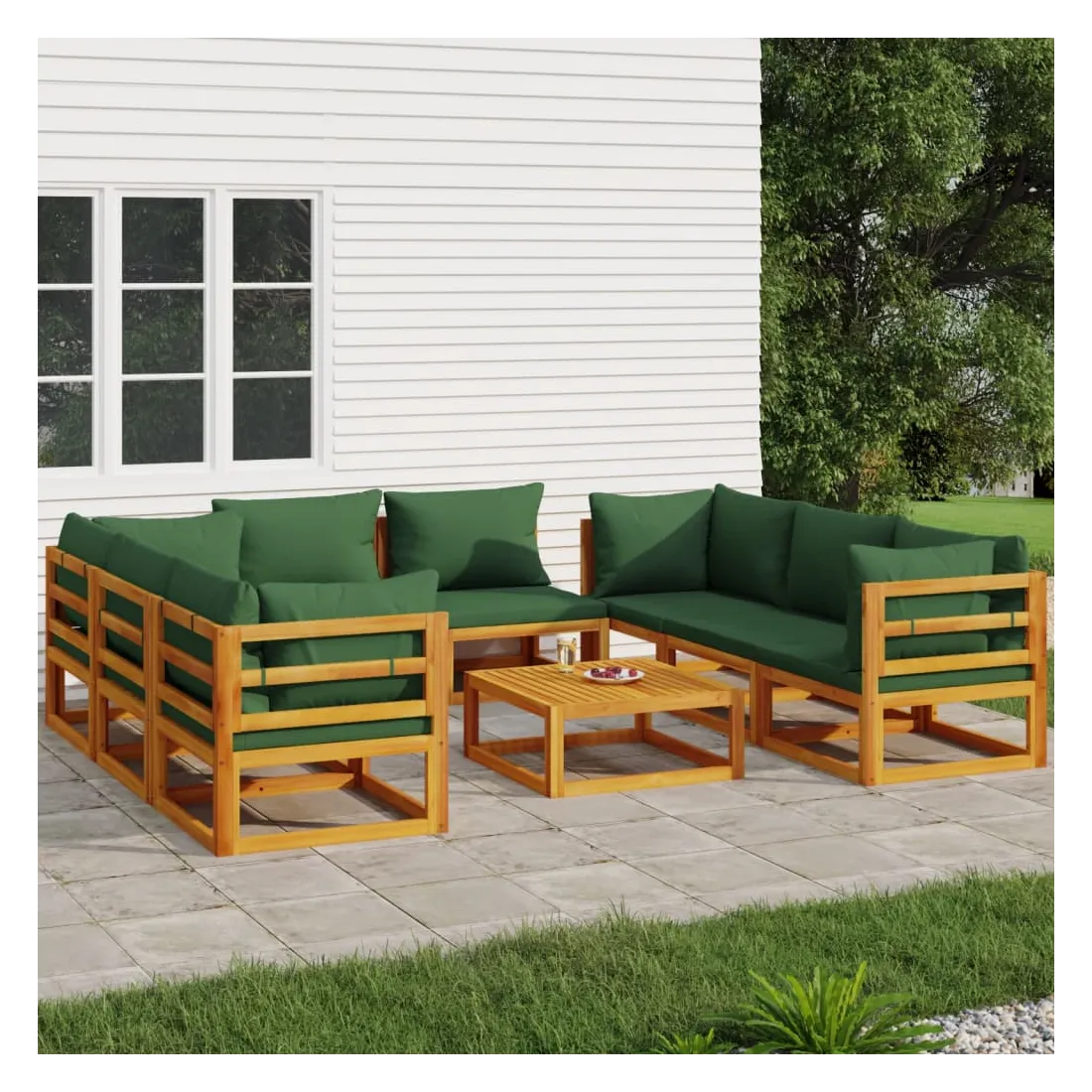 Salon de jardin 9 pcs avec coussins vert bois massif