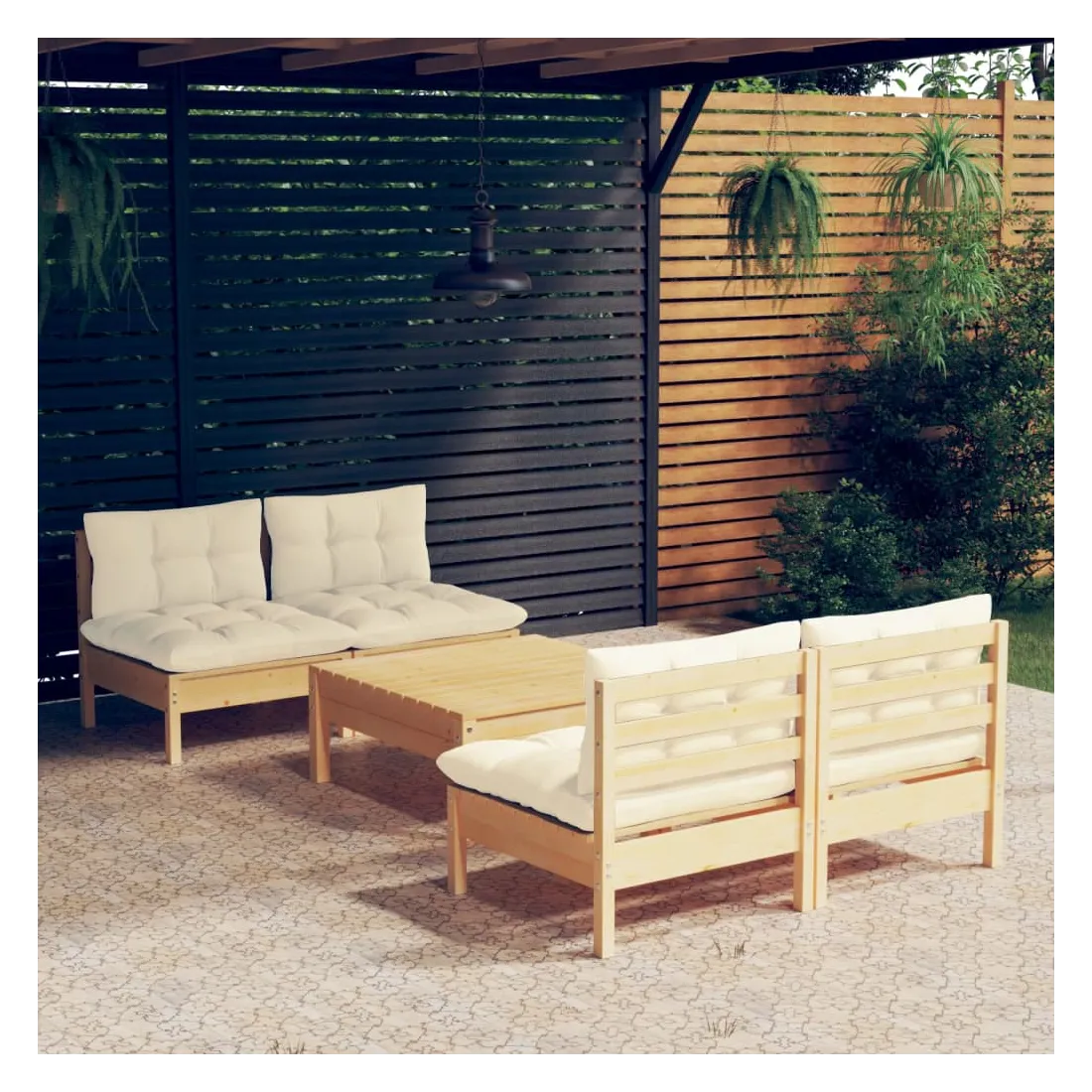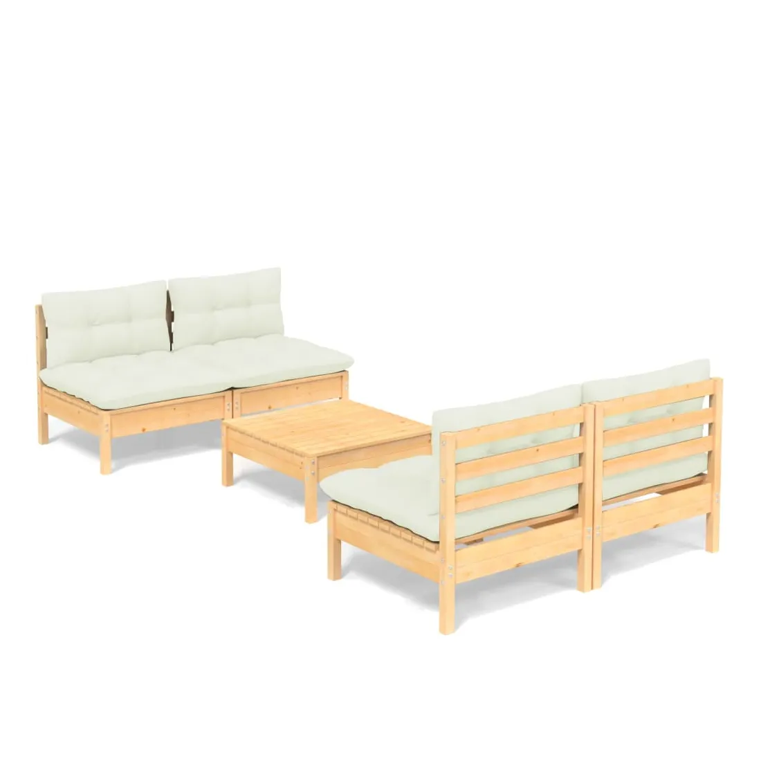 Salon de jardin 5 pcs avec coussins crème bois de pin