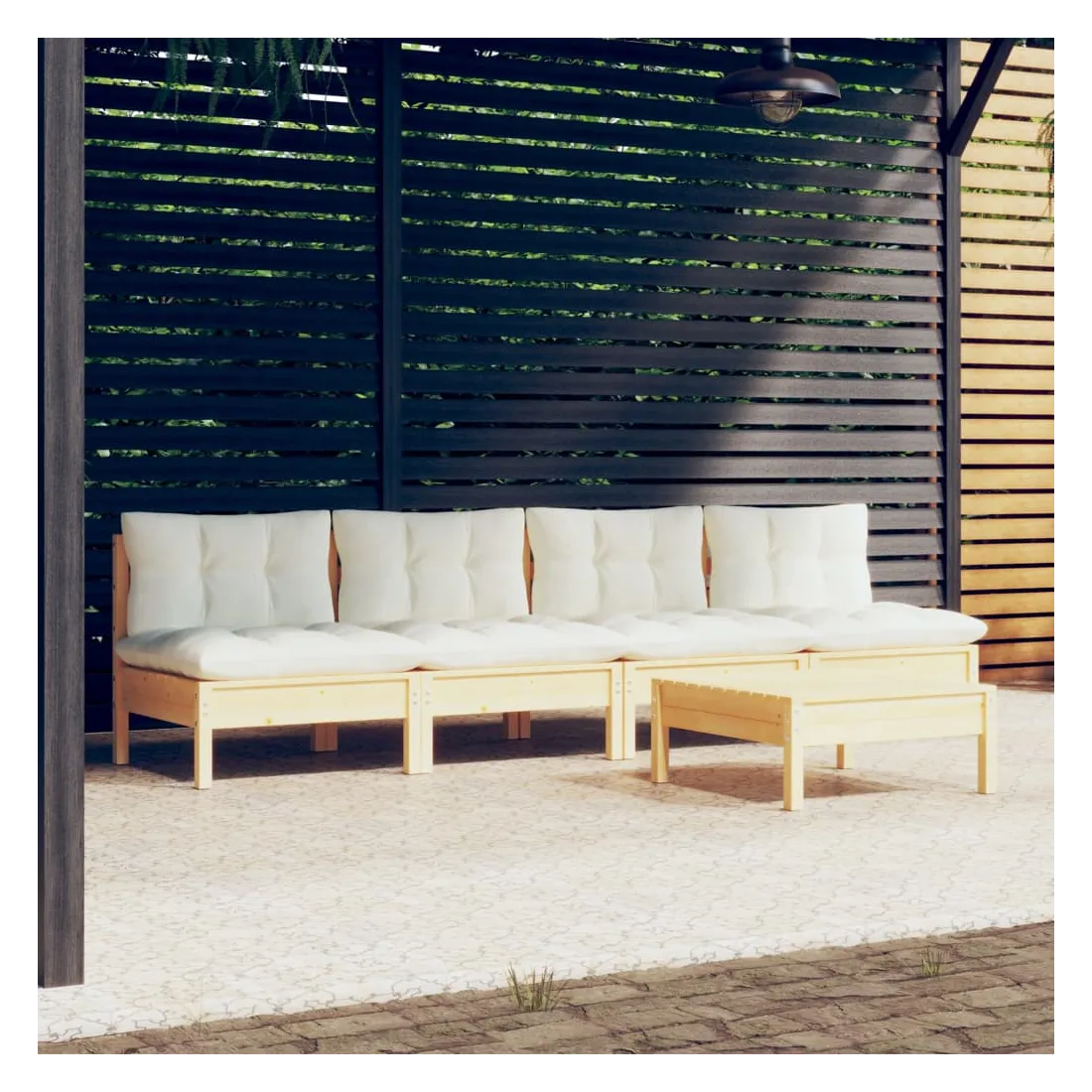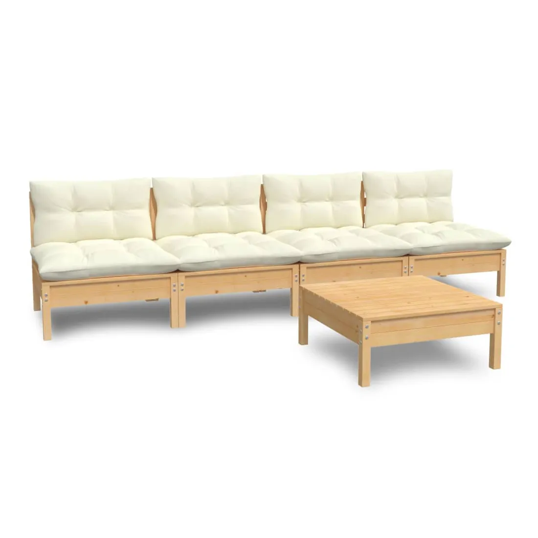 Salon de jardin 5 pcs avec coussins crème bois de pin