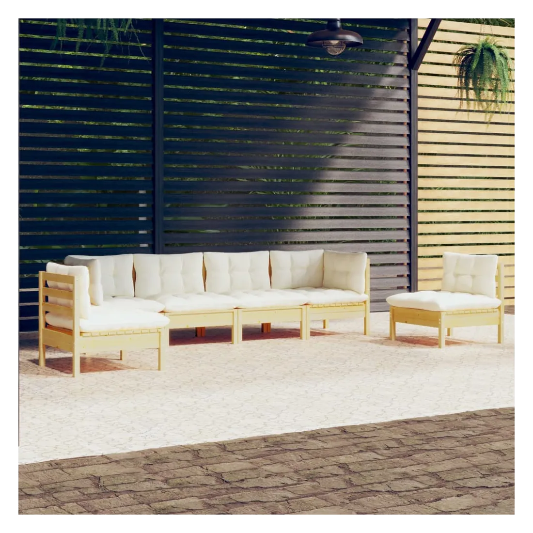 Ce salon de jardin est un excellent choix pour vous détendre et profiter du beau temps, faire une sieste ou discuter avec votre famille ou vos amis. Le salon de patio est fabriqué en bois de pin massif, ce qui le rend robuste et stable. Les coussins ajoutent un confort supplémentaire. Vous pouvez le combiner avec d’autres segments modulaires pour créer vos propres configurations de salon de jardin ! Remarque : afin de prolonger la durée de vie des meubles d'extérieur, nous vous recommandons de les protéger avec une housse imperméable.