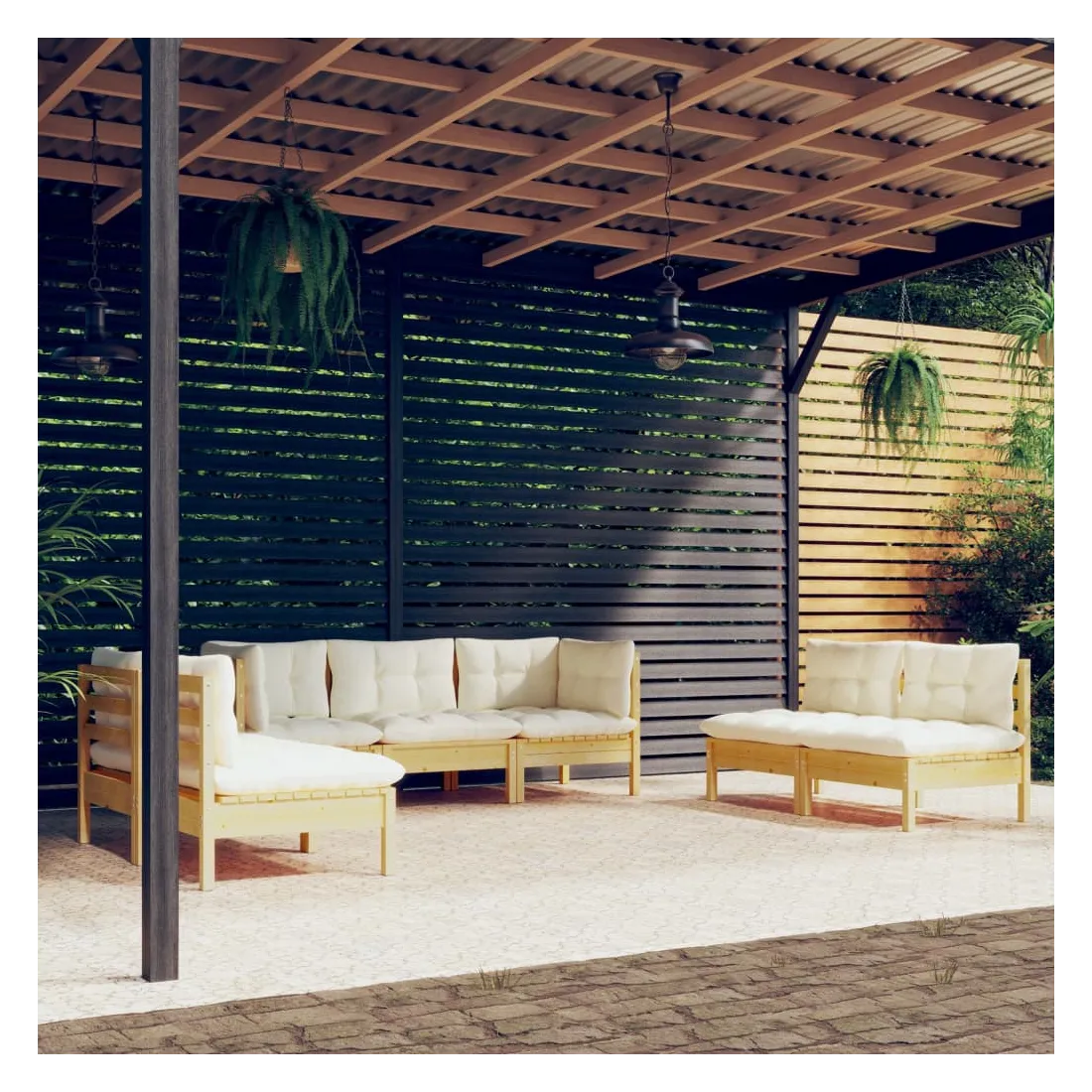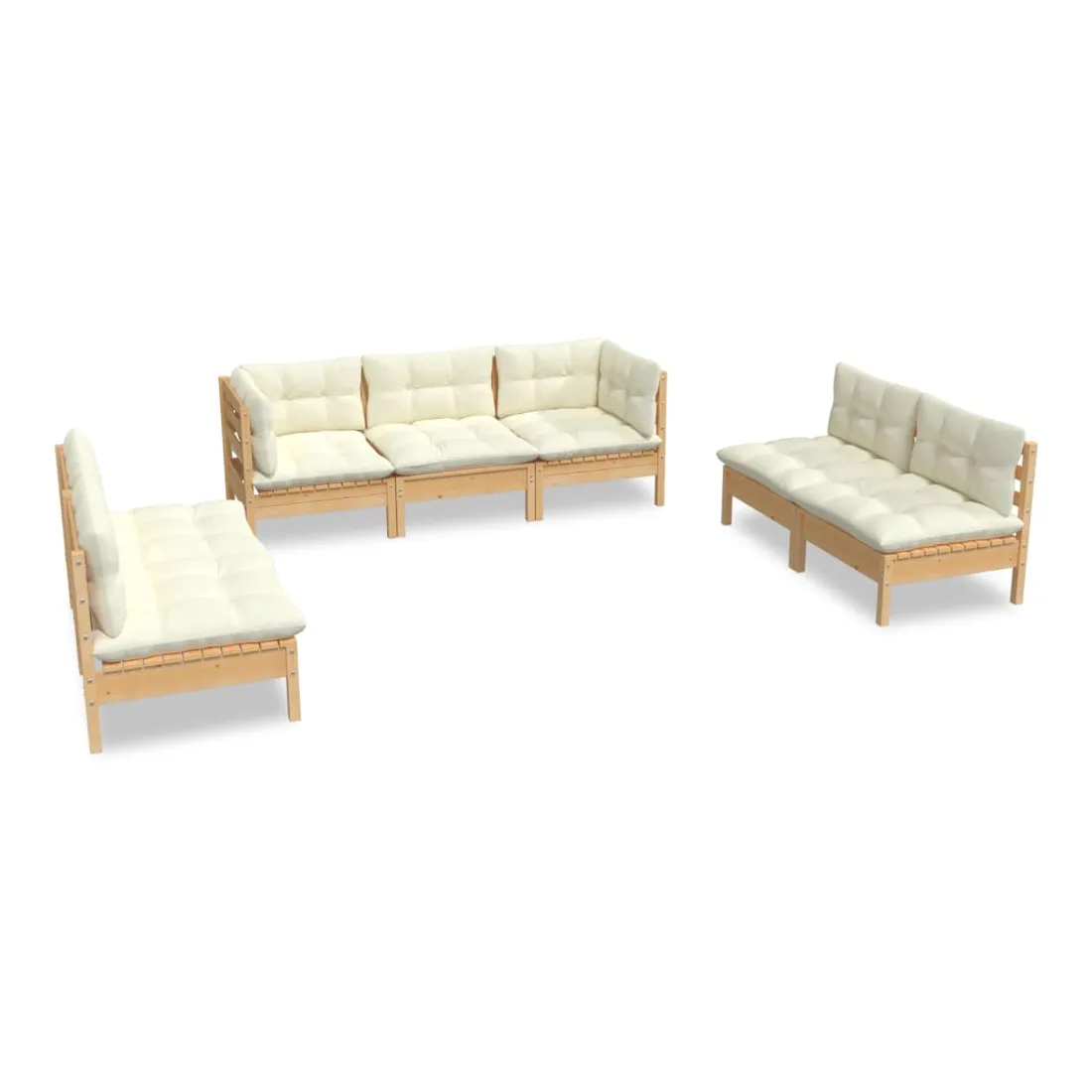 Ce salon de jardin est un excellent choix pour vous détendre et profiter du beau temps, faire une sieste ou discuter avec votre famille ou vos amis. Le salon de patio est fabriqué en bois de pin massif, ce qui le rend robuste et stable. Les coussins ajoutent un confort supplémentaire. Vous pouvez le combiner avec d’autres segments modulaires pour créer vos propres configurations de salon de jardin ! Remarque : afin de prolonger la durée de vie des meubles d'extérieur, nous vous recommandons de les protéger avec une housse imperméable.