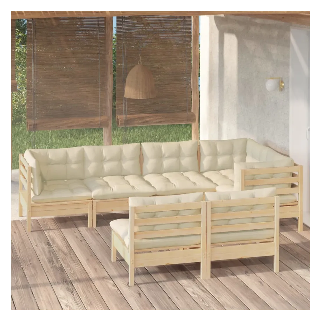 Ce salon de jardin est un excellent choix pour vous détendre et profiter du beau temps, faire une sieste ou discuter avec votre famille ou vos amis. Le salon de patio est fabriqué en bois de pin massif, ce qui le rend robuste et stable. Les coussins ajoutent un confort supplémentaire. Vous pouvez le combiner avec d’autres segments modulaires pour créer vos propres configurations de salon de jardin ! Remarque : afin de prolonger la durée de vie des meubles d'extérieur, nous vous recommandons de les protéger avec une housse imperméable.