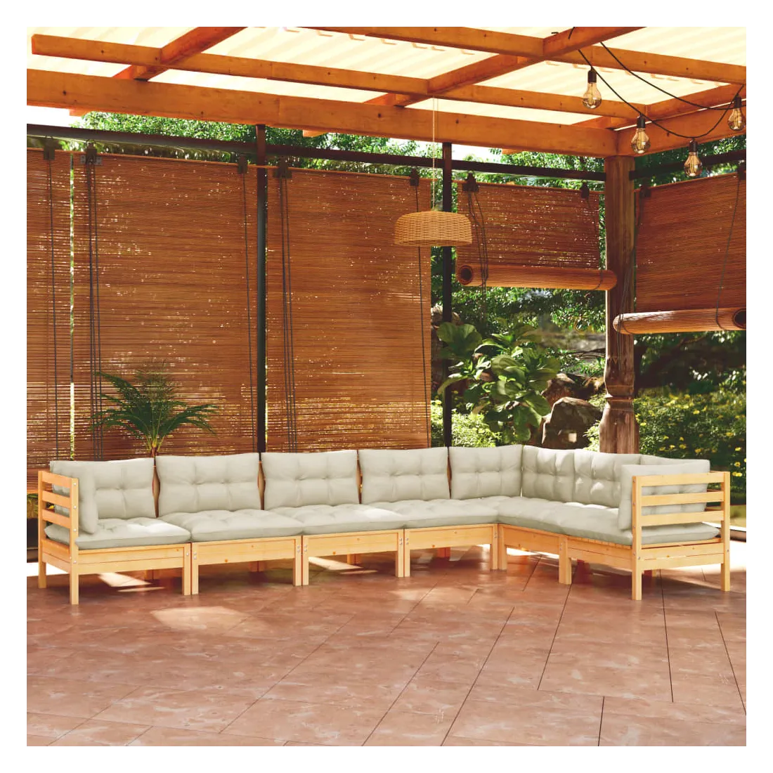 Ce salon de jardin est un excellent choix pour vous détendre et profiter du beau temps, faire une sieste ou discuter avec votre famille ou vos amis. Le salon de patio est fabriqué en bois de pin massif, ce qui le rend robuste et stable. Les coussins ajoutent un confort supplémentaire. Vous pouvez le combiner avec d’autres segments modulaires pour créer vos propres configurations de salon de jardin ! Remarque : afin de prolonger la durée de vie des meubles d'extérieur, nous vous recommandons de les protéger avec une housse imperméable.