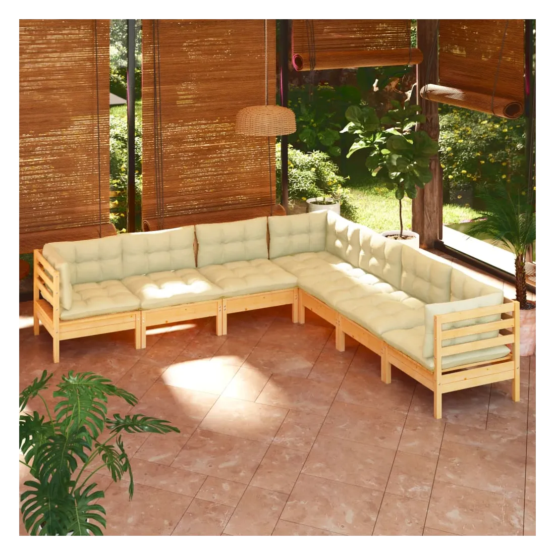Ce salon de jardin est un excellent choix pour vous détendre et profiter du beau temps, faire une sieste ou discuter avec votre famille ou vos amis. Le salon de patio est fabriqué en bois de pin massif, ce qui le rend robuste et stable. Les coussins ajoutent un confort supplémentaire. Vous pouvez le combiner avec d’autres segments modulaires pour créer vos propres configurations de salon de jardin ! Remarque : afin de prolonger la durée de vie des meubles d'extérieur, nous vous recommandons de les protéger avec une housse imperméable.