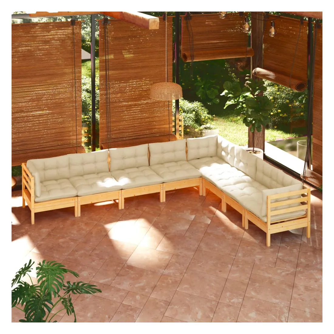 Ce salon de jardin est un excellent choix pour vous détendre et profiter du beau temps, faire une sieste ou discuter avec votre famille ou vos amis. Le salon de patio est fabriqué en bois de pin massif, ce qui le rend robuste et stable. Les coussins ajoutent un confort supplémentaire. Vous pouvez le combiner avec d’autres segments modulaires pour créer vos propres configurations de salon de jardin ! Remarque : afin de prolonger la durée de vie des meubles d'extérieur, nous vous recommandons de les protéger avec une housse imperméable.