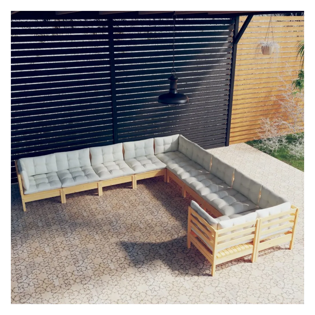 Cet ensemble de salon de jardin en bois est un choix excellent pour vous détendre et profiter du bon temps, faire une sieste ou discuter avec votre famille ou vos amis. Le salon de patio est fabriqué en bois de pin massif, ce qui le rend robuste et stable. Les coussins ajoutent un confort supplémentaire. Vous pouvez le combiner avec d’autres segments modulaires pour créer vos propres configurations de salon de jardin ! Remarque : afin de prolonger la durée de vie des meubles d'extérieur, nous vous recommandons de les protéger avec une housse imperméable.