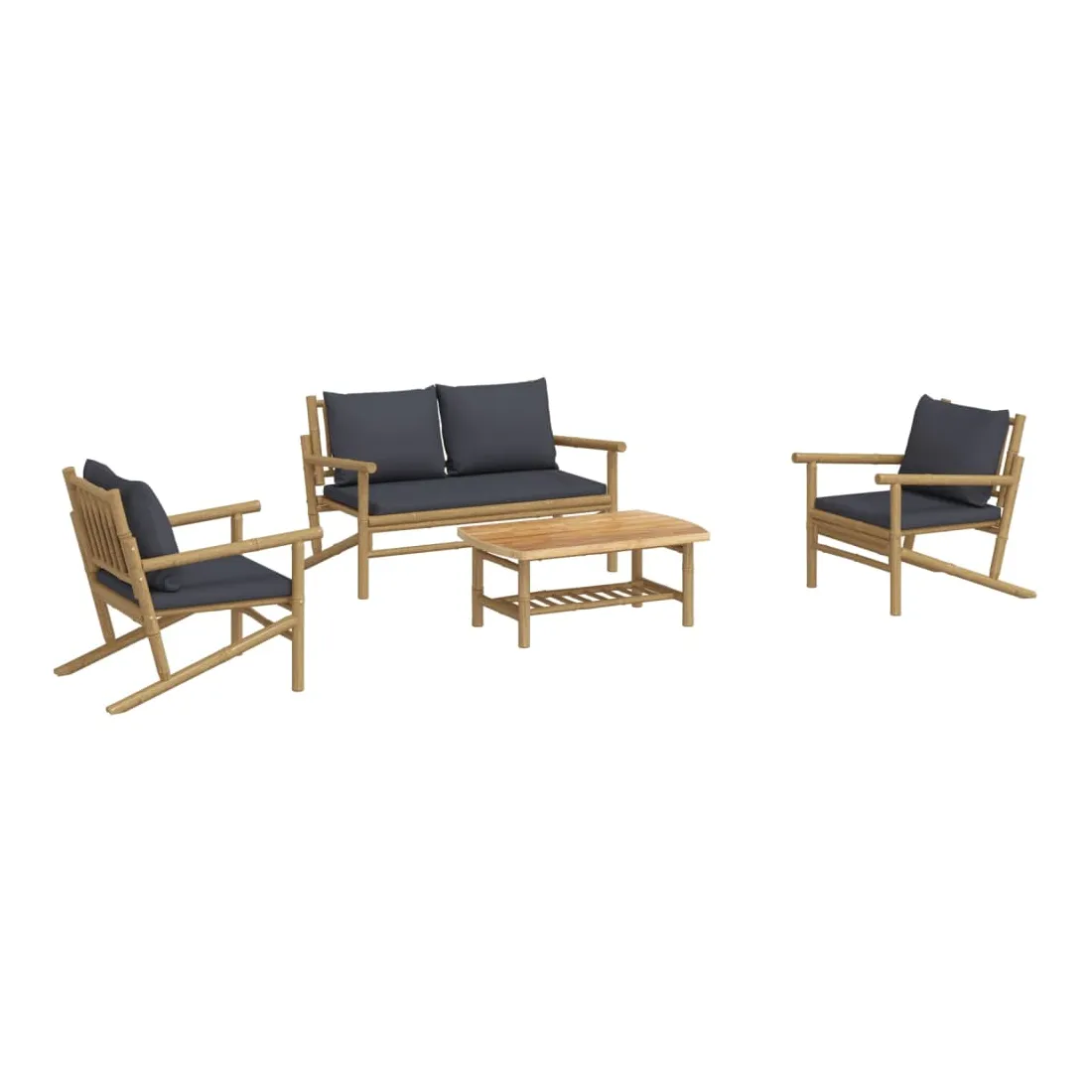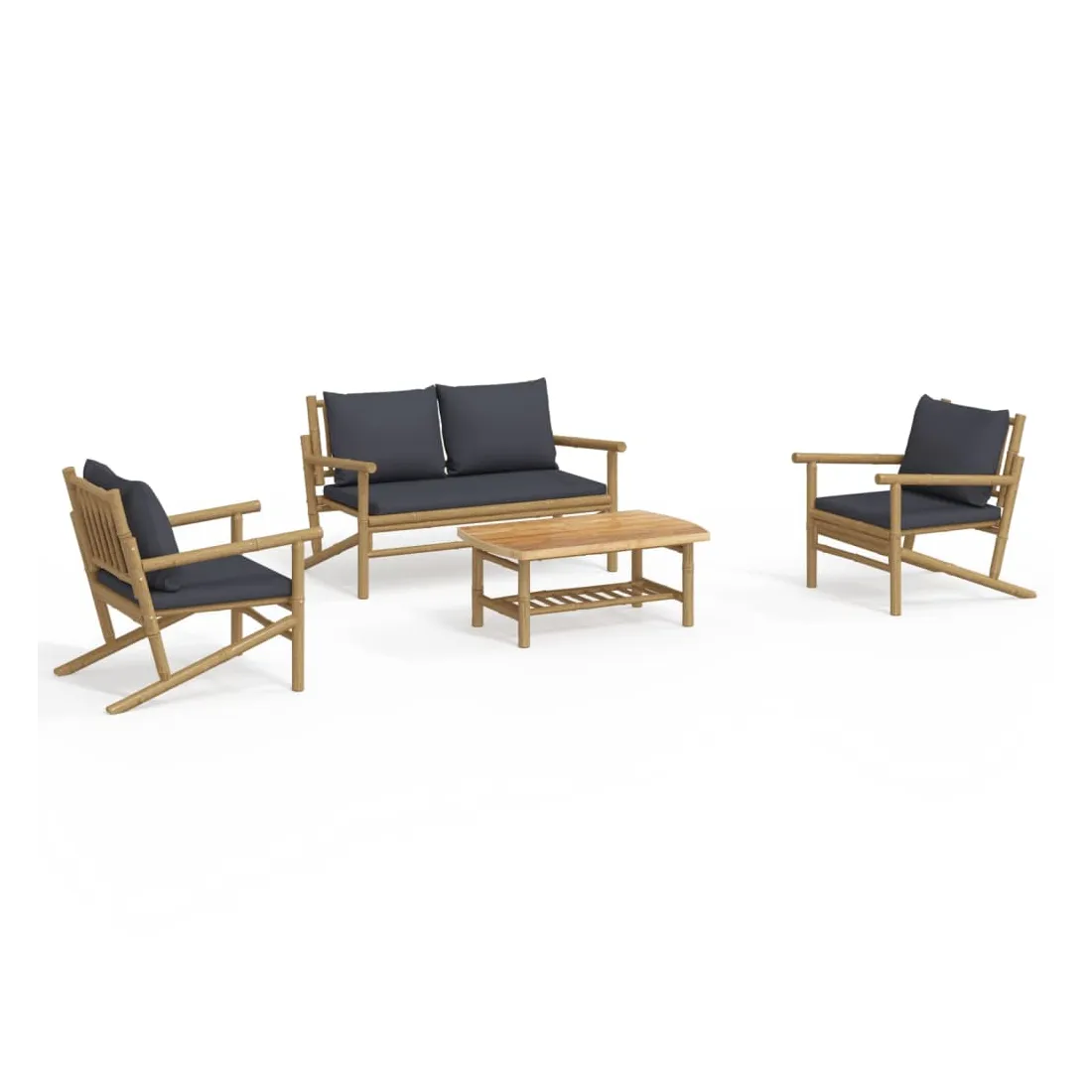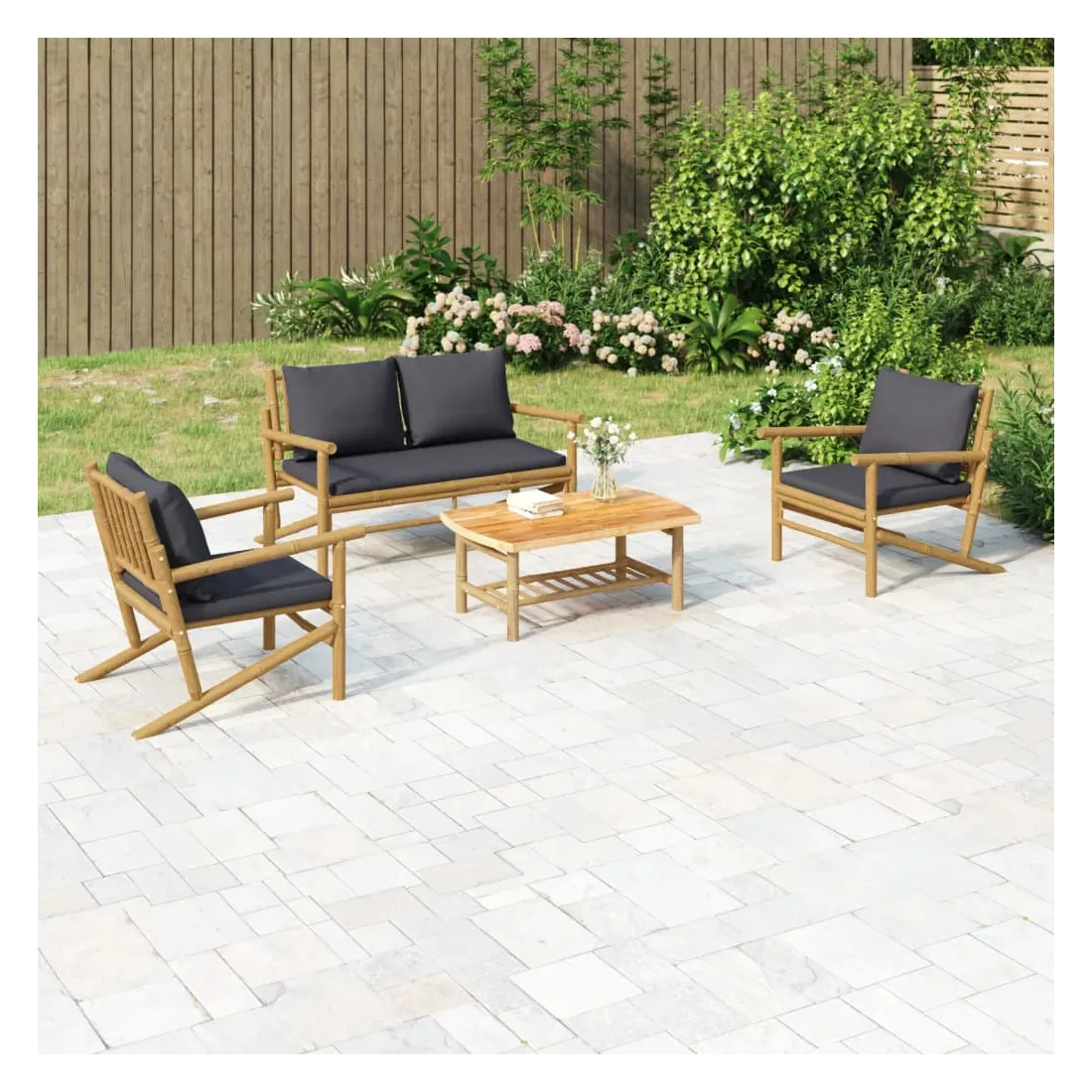 Savourez une tasse de café ou de thé par beau temps dans votre espace extérieur avec cet ensemble de salon de jardin rustique en bambou ! Ensemble en bambou : le bambou est connu pour sa flexibilité et sa dureté. Les meubles en bambou sont une bonne option si l'on veut des meubles d'extérieur robustes fabriqués à partir de matériaux naturels.Expérience d'assise confortable : le dossier et les accoudoirs ajoutent un confort d'assise supplémentaire pour l'ensemble de canapé de jardin. De plus, les coussins d'assise et de dossier moelleux offrent un confort pendant votre temps d'assise.Table pratique : la table robuste est parfaite pour placer des repas, des boissons et d'autres objets décoratifs.Conception modulaire : l'ensemble de salon est flexible et facile à déplacer, vous pouvez donc le combiner avec d'autres segments modulaires dans la boutique en ligne pour créer vos propres configurations d'ensemble de salon d'extérieur ! Remarque :Pour que vos meubles d'extérieur restent beaux, nous vous recommandons de les protéger avec une housse imperméable.