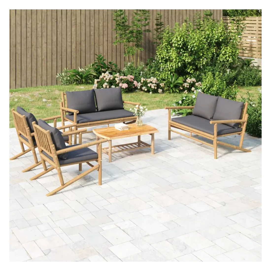 Savourez une tasse de café ou de thé par beau temps dans votre espace extérieur avec cet ensemble de salon de jardin rustique en bambou ! Ensemble en bambou : le bambou est connu pour sa flexibilité et sa dureté. Les meubles en bambou sont une bonne option si l'on veut des meubles d'extérieur robustes fabriqués à partir de matériaux naturels.Expérience d'assise confortable : le dossier et les accoudoirs ajoutent un confort d'assise supplémentaire pour l'ensemble de canapé de jardin. De plus, les coussins d'assise et de dossier moelleux offrent un confort pendant votre temps d'assise.Table pratique : la table robuste est parfaite pour placer des repas, des boissons et d'autres objets décoratifs.Conception modulaire : l'ensemble de salon est flexible et facile à déplacer, vous pouvez donc le combiner avec d'autres segments modulaires dans la boutique en ligne pour créer vos propres configurations d'ensemble de salon d'extérieur ! Remarque :Pour que vos meubles d'extérieur restent beaux, nous vous recommandons de les protéger avec une housse imperméable.