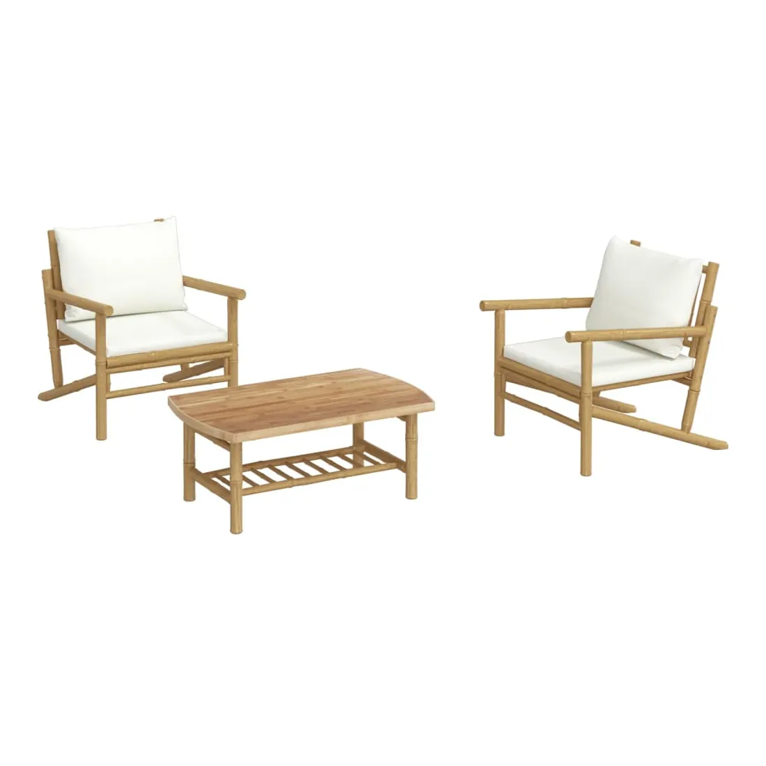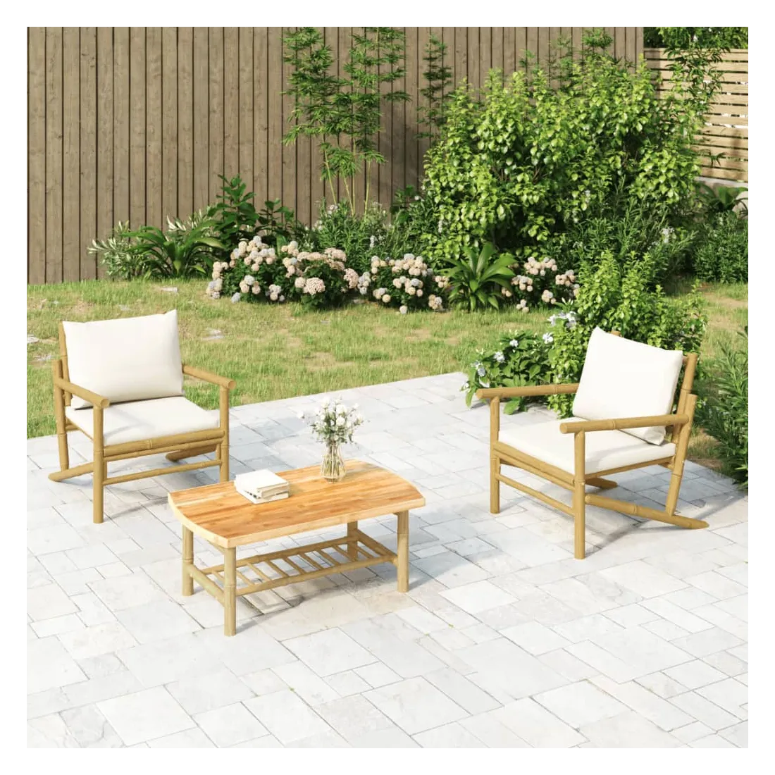 Savourez une tasse de café ou de thé par beau temps dans votre espace extérieur avec cet ensemble de salon de jardin rustique en bambou ! Ensemble en bambou : le bambou est connu pour sa flexibilité et sa dureté. Les meubles en bambou sont une bonne option si l'on veut des meubles d'extérieur robustes fabriqués à partir de matériaux naturels.Expérience d'assise confortable : le dossier et les accoudoirs ajoutent un confort d'assise supplémentaire pour l'ensemble de canapé de jardin. De plus, les coussins d'assise et de dossier moelleux offrent un confort pendant votre temps d'assise.Table pratique : la table robuste est parfaite pour placer des repas, des boissons et d'autres objets décoratifs.Conception modulaire : l'ensemble de salon est flexible et facile à déplacer, vous pouvez donc le combiner avec d'autres segments modulaires dans la boutique en ligne pour créer vos propres configurations d'ensemble de salon d'extérieur ! Remarque :Pour que vos meubles d'extérieur restent beaux, nous vous recommandons de les protéger avec une housse imperméable.