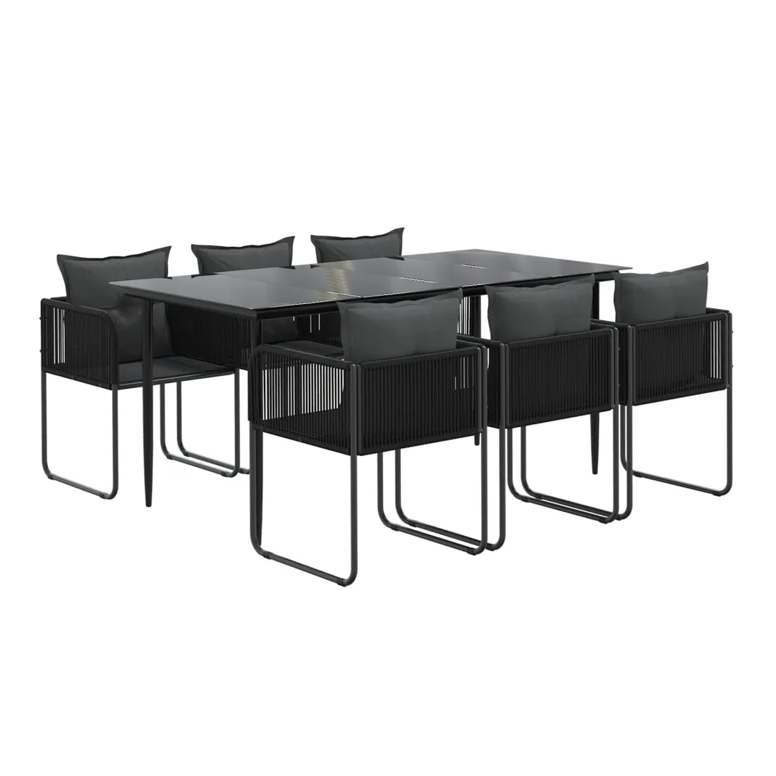 Créez une esthétique convaincante et uniforme dans votre espace extérieur avec cet ensemble de salle à manger de jardin ! Matériau résistant aux intempéries : fabriqué en résine tressée résistante aux intempéries et à l'eau, cet ensemble de salle à manger de jardin est facile à nettoyer, résistant à l'usure et adapté à un usage quotidien.Cadre robuste : les cadres en acier enduit de poudre rendent l'ensemble de salle à manger d'extérieur robuste et stable pour une utilisation quotidienne à l'extérieur.Dessus de table pratique : le dessus lisse de la table de salle à manger est en verre trempé, facile à nettoyer avec un chiffon humide. De plus, le dessus robuste est parfait pour placer des repas, des boissons et d'autres objets décoratifs.Confort supplémentaire : les coussins bien rembourrés offrent un confort ultime pendant votre temps d'assise. Remarque :Afin de prolonger la durée de vie de votre mobilier d'extérieur, nous vous recommandons de le protéger avec une housse imperméable.Chaque produit est livré avec un manuel de montage dans la boîte pour un montage facile.