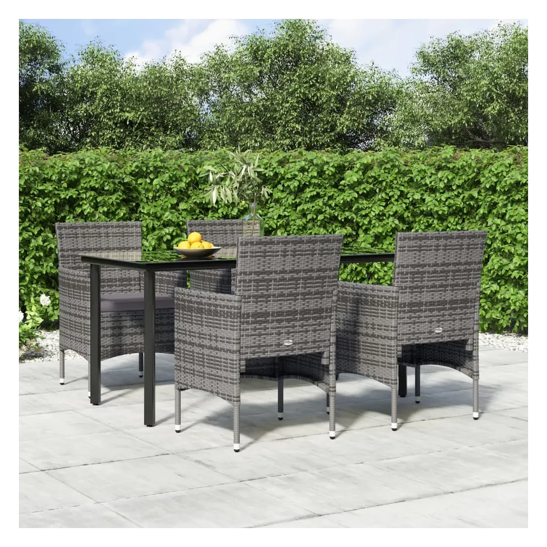 Cet ensemble de salle à manger de jardin, au design élégant et contemporain, est un excellent choix pour manger ou se détendre dans le jardin. Matériau résistant aux intempéries : fabriqué en résine tressée résistante aux intempéries et à l'eau, cet ensemble de salle à manger de jardin est facile à nettoyer, résistant à l'usure et adapté à un usage quotidien.Cadre robuste : les cadres en acier enduit de poudre rendent l'ensemble de salle à manger d'extérieur robuste et stable pour une utilisation quotidienne à l'extérieur.Dessus de table pratique : le dessus lisse de la table de salle à manger est en verre trempé, facile à nettoyer avec un chiffon humide. De plus, le dessus robuste est parfait pour placer des repas, des boissons et d'autres objets décoratifs.Design confortable : conçues avec des dossiers et des accoudoirs incurvés, ces chaises d'extérieur offrent un maximum de confort.Confort supplémentaire : les coussins bien rembourrés offrent un confort ultime pendant votre temps d'assise. Remarque :Afin de prolonger la durée de vie de votre mobilier d'extérieur, nous vous recommandons de le protéger avec une housse imperméable.Chaque produit est livré avec un manuel de montage dans la boîte pour un montage facile.