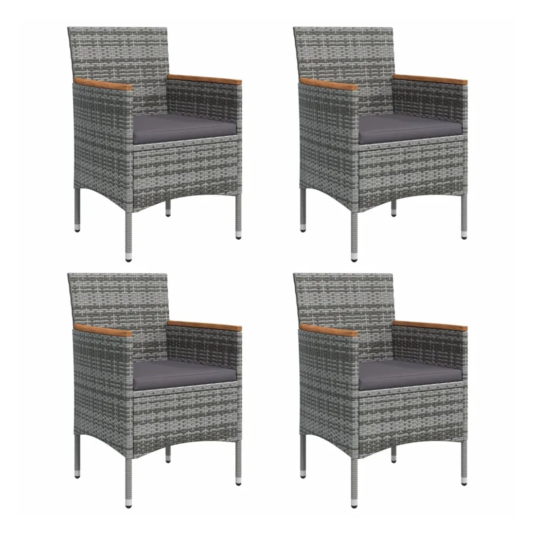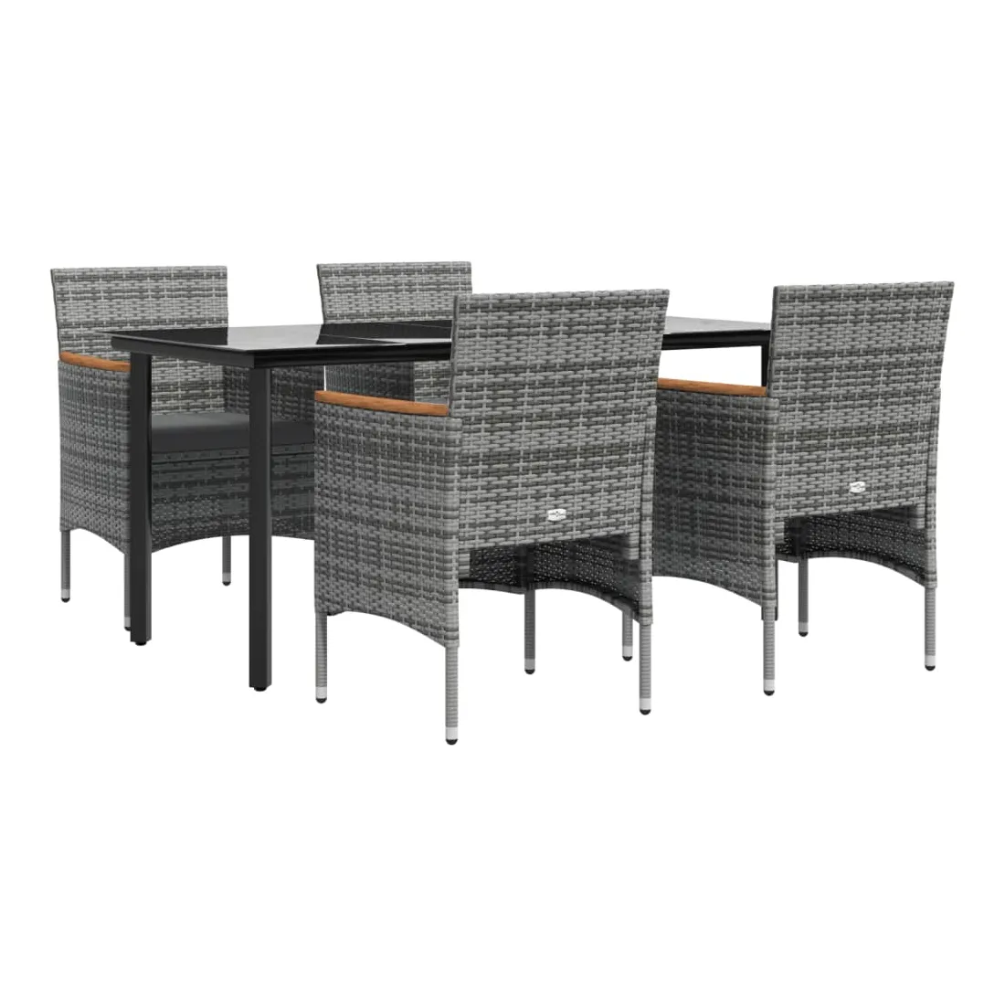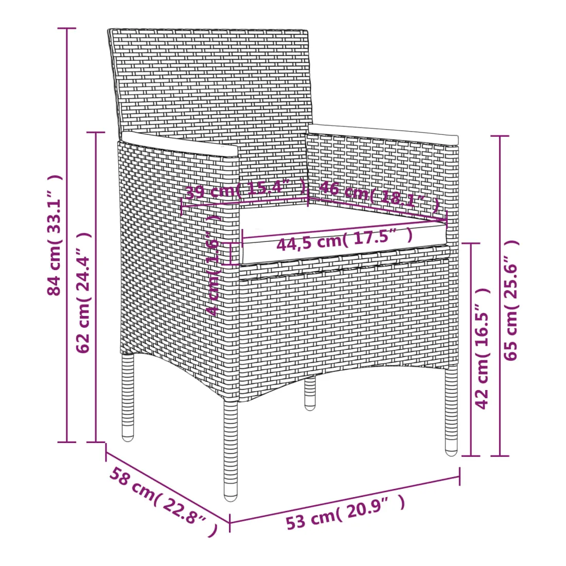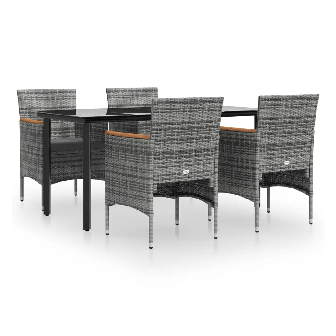 Cet ensemble de salle à manger de jardin, au design élégant et contemporain, est un excellent choix pour manger ou se détendre dans le jardin. Matériau résistant aux intempéries : fabriqué en résine tressée résistante aux intempéries et à l'eau, cet ensemble de salle à manger de jardin est facile à nettoyer, résistant à l'usure et adapté à un usage quotidien.Cadre robuste : les cadres en acier enduit de poudre rendent l'ensemble de salle à manger d'extérieur robuste et stable pour une utilisation quotidienne à l'extérieur.Dessus de table pratique : le dessus lisse de la table de salle à manger est en verre trempé, facile à nettoyer avec un chiffon humide. De plus, le dessus robuste est parfait pour placer des repas, des boissons et d'autres objets décoratifs.Design confortable : conçues avec des dossiers et des accoudoirs incurvés, ces chaises d'extérieur offrent un maximum de confort.Confort supplémentaire : les coussins bien rembourrés offrent un confort ultime pendant votre temps d'assise. Remarque :Afin de prolonger la durée de vie de votre mobilier d'extérieur, nous vous recommandons de le protéger avec une housse imperméable.Chaque produit est livré avec un manuel de montage dans la boîte pour un montage facile.