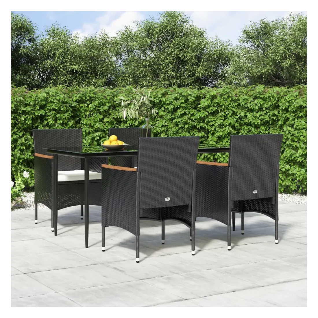 Cet ensemble de salle à manger de jardin, au design élégant et contemporain, est un excellent choix pour manger ou se détendre dans le jardin. Matériau résistant aux intempéries : fabriqué en résine tressée résistante aux intempéries et à l'eau, cet ensemble de salle à manger de jardin est facile à nettoyer, résistant à l'usure et adapté à un usage quotidien.Cadre robuste : les cadres en acier enduit de poudre rendent l'ensemble de salle à manger d'extérieur robuste et stable pour une utilisation quotidienne à l'extérieur.Dessus de table pratique : le dessus lisse de la table de salle à manger est en verre trempé, facile à nettoyer avec un chiffon humide. De plus, le dessus robuste est parfait pour placer des repas, des boissons et d'autres objets décoratifs.Design confortable : conçues avec des dossiers et des accoudoirs incurvés, ces chaises d'extérieur offrent un maximum de confort.Confort supplémentaire : les coussins bien rembourrés offrent un confort ultime pendant votre temps d'assise. Remarque :Afin de prolonger la durée de vie de votre mobilier d'extérieur, nous vous recommandons de le protéger avec une housse imperméable.Chaque produit est livré avec un manuel de montage dans la boîte pour un montage facile.