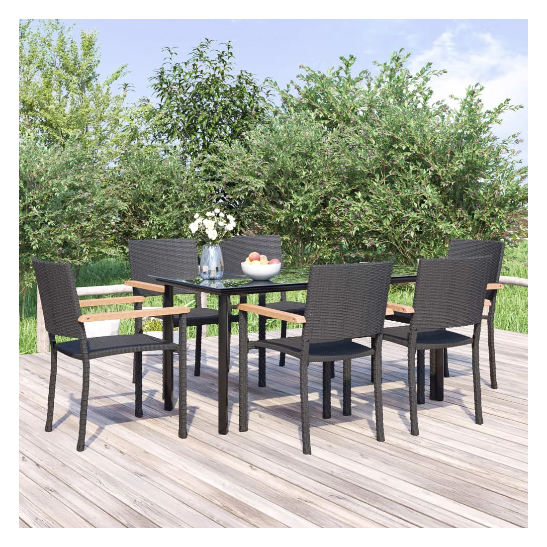 Cet élégant ensemble de salle à manger de jardin est destiné à être le point de mire de votre jardin ou patio ! C'est un excellent choix pour les repas en plein air ou pour vous détendre dans l'espace extérieur ! Matériau durable : la résine tressée, également connue sous le nom de rotin poly, résiste aux intempéries et est facile à nettoyer. Elle reste belle à l'extérieur pendant une longue période. Elle offre une excellente qualité, commodité et un aspect esthétique.Cadre robuste et stable : les cadres en acier enduit de poudre rendent l'ensemble de terrasse robuste et stable pour une utilisation quotidienne à l'extérieur.Dessus de table pratique : le dessus lisse de la table de salle à manger est en verre trempé, facile à nettoyer avec un chiffon humide. De plus, le dessus robuste est parfait pour placer des repas, des boissons et d'autres objets décoratifs.Assise confortable : la chaise de salle à manger est conçue avec un dossier et des accoudoirs pour vous offrir une expérience d'assise confortable. Remarque :Afin de prolonger la durée de vie de votre mobilier d'extérieur, nous vous recommandons de le protéger avec une housse imperméable.Chaque produit est livré avec un manuel de montage dans la boîte pour un montage facile.