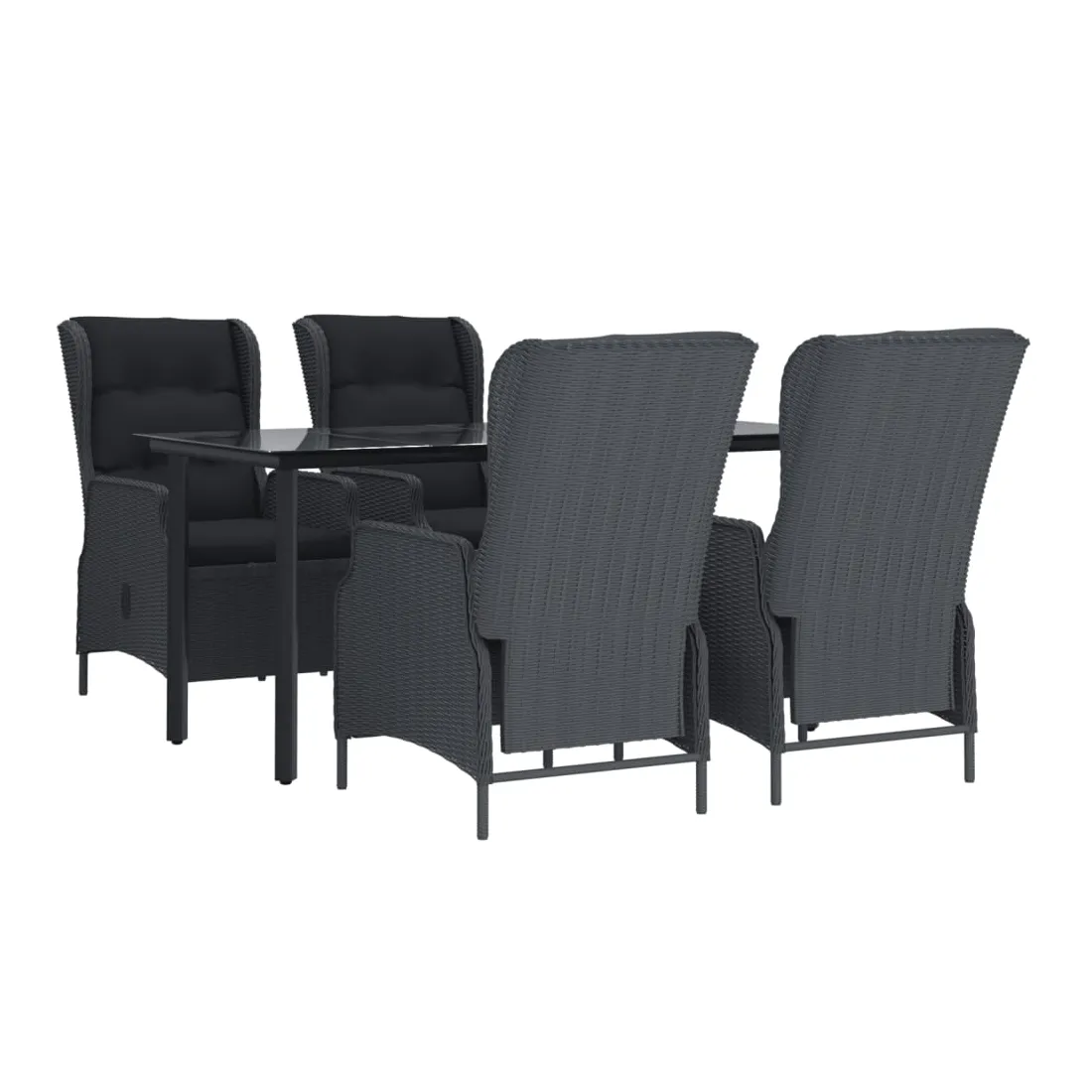 Profitez d'un bon repas ou d'un thé l'après-midi dans votre espace extérieur avec cet ensemble de salle à manger de jardin ! Ayant un design élégant, il deviendra le point central de votre jardin et de votre terrasse ! Matériau résistant aux intempéries : la résine tressée, également connue sous le nom de rotin poly, résiste aux intempéries et est facile à nettoyer. Elle reste belle à l'extérieur pendant une longue période. Elle offre une excellente qualité, commodité et un aspect esthétique.Cadre robuste : les cadres en acier enduit de poudre rendent l'ensemble de salle à manger d'extérieur robuste et stable pour une utilisation quotidienne à l'extérieur.Dessus de table pratique : le dessus lisse de la table de salle à manger est en verre trempé, facile à nettoyer avec un chiffon humide. De plus, le dessus robuste est parfait pour placer des repas, des boissons et d'autres objets décoratifs.Dossier réglable : grâce au mécanisme de levage à gaz, le dossier est également réglable pour s'adapter à vos positions. En touchant le bouton latéral, le dossier peut s'incliner, pour une position confortable.Confort supplémentaire : les coussins bien rembourrés de ces chaises à dîner offrent un confort ultime pendant votre temps d'assise. Remarque :Afin de prolonger la durée de vie de votre mobilier d'extérieur, nous vous recommandons de le protéger avec une housse imperméable.Chaque produit est livré avec un manuel de montage dans la boîte pour un montage facile.