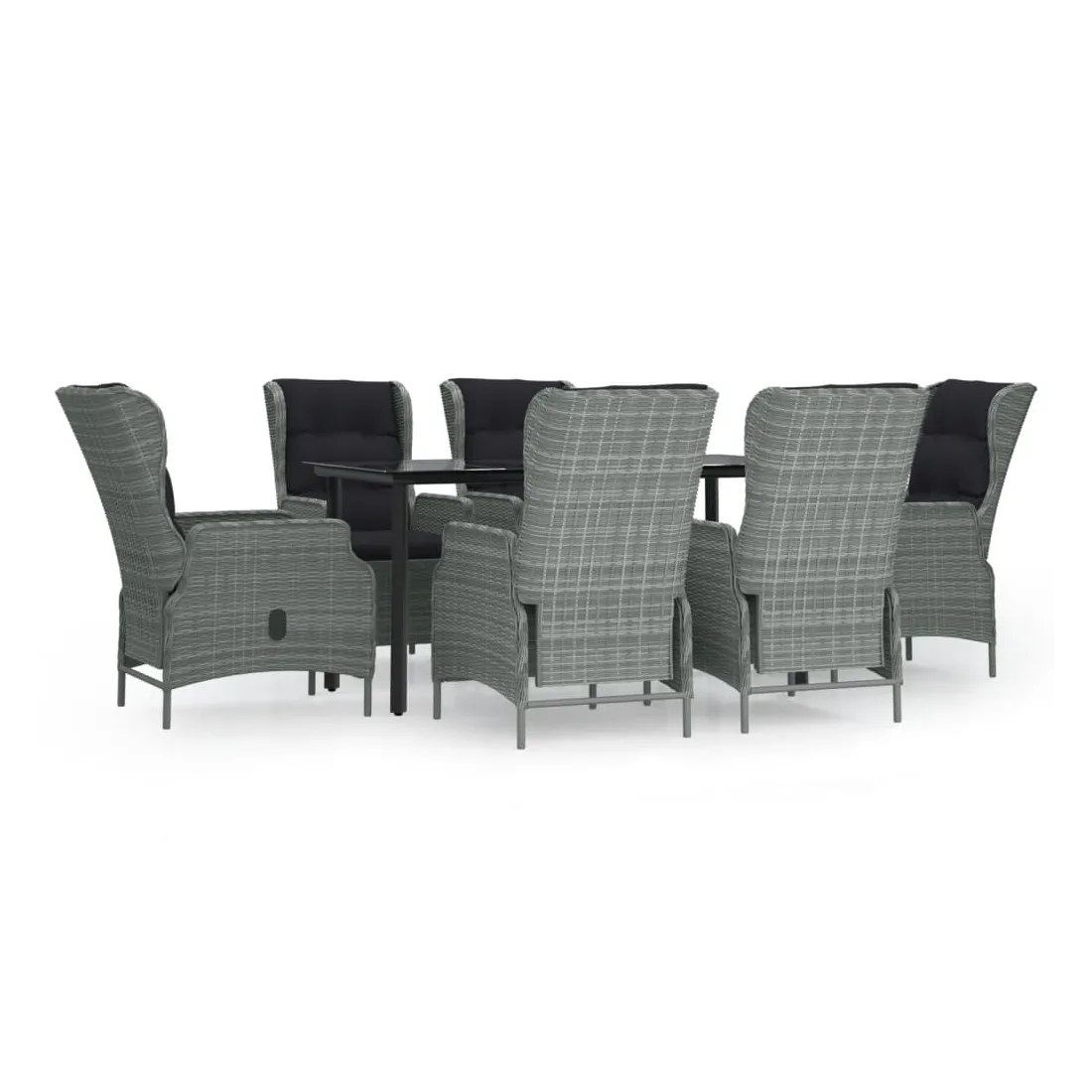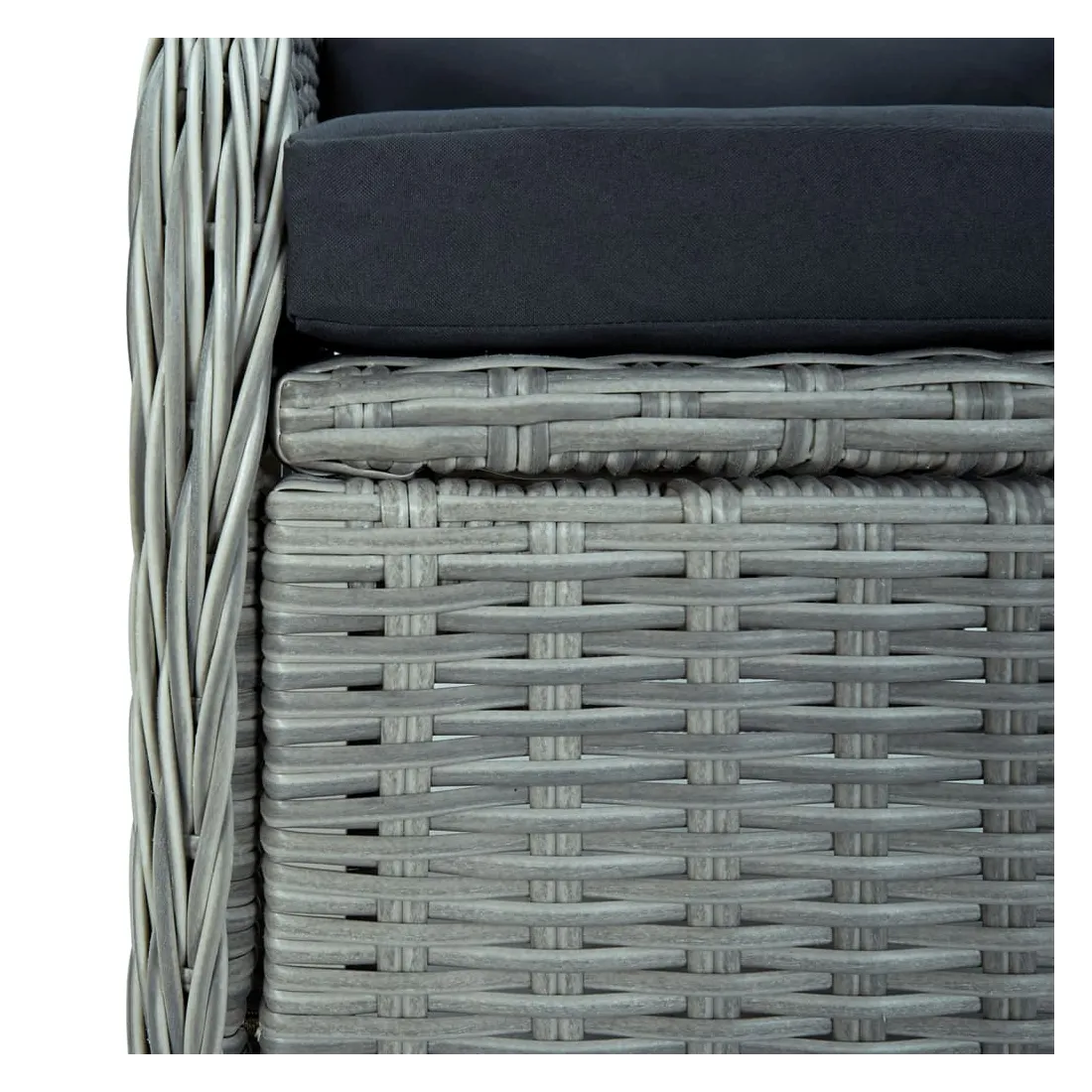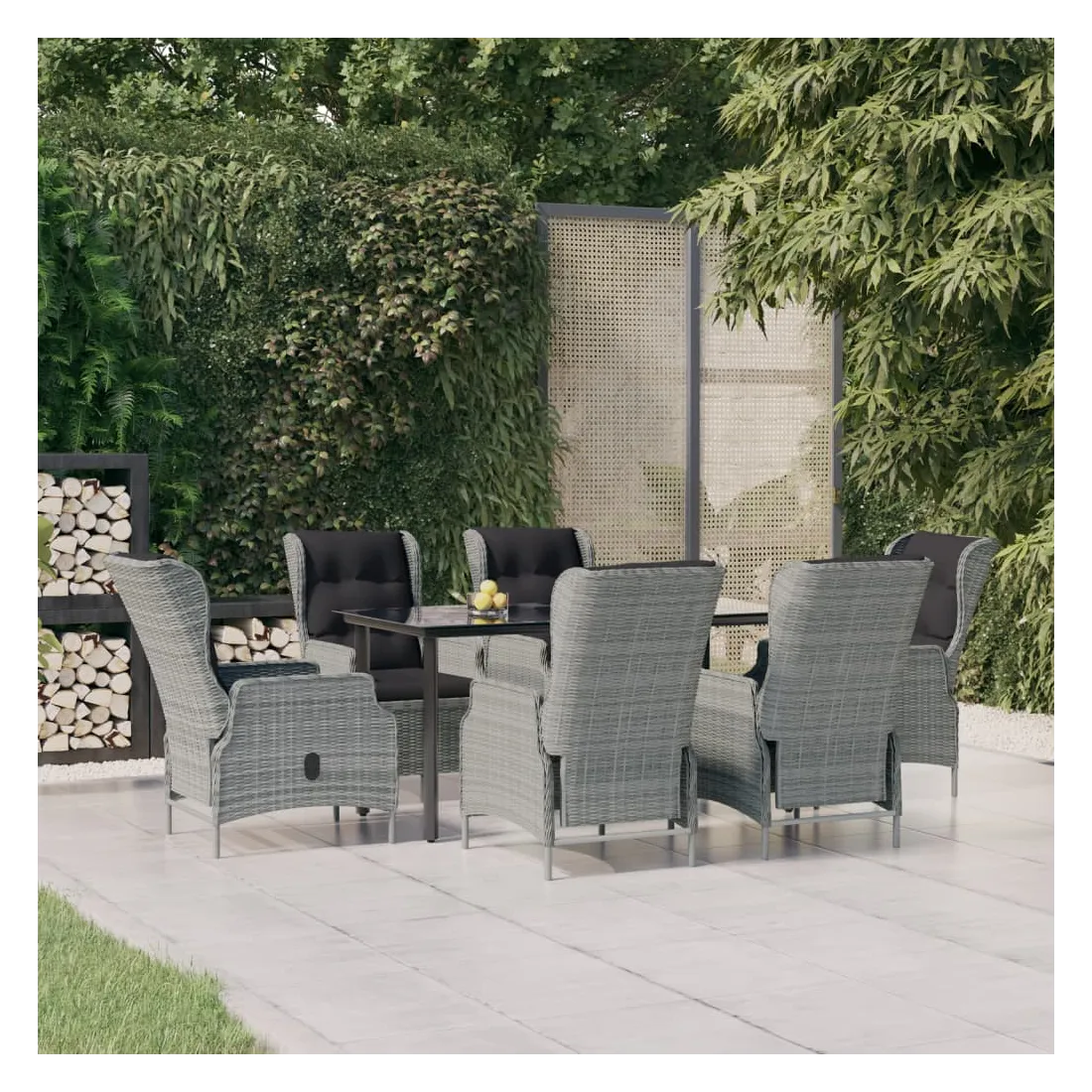 Profitez d'un bon repas ou d'un thé l'après-midi dans votre espace extérieur avec cet ensemble de salle à manger de jardin ! Ayant un design élégant, il deviendra le point central de votre jardin et de votre terrasse ! Matériau résistant aux intempéries : la résine tressée, également connue sous le nom de rotin poly, résiste aux intempéries et est facile à nettoyer. Elle reste belle à l'extérieur pendant une longue période. Elle offre une excellente qualité, commodité et un aspect esthétique.Cadre robuste : les cadres en acier enduit de poudre rendent l'ensemble de salle à manger d'extérieur robuste et stable pour une utilisation quotidienne à l'extérieur.Dessus de table pratique : le dessus lisse de la table de salle à manger est en verre trempé, facile à nettoyer avec un chiffon humide. De plus, le dessus robuste est parfait pour placer des repas, des boissons et d'autres objets décoratifs.Dossier réglable : grâce au mécanisme de levage à gaz, le dossier est également réglable pour s'adapter à vos positions. En touchant le bouton latéral, le dossier peut s'incliner, pour une position confortable.Confort supplémentaire : les coussins bien rembourrés de ces chaises à dîner offrent un confort ultime pendant votre temps d'assise. Remarque :Afin de prolonger la durée de vie de votre mobilier d'extérieur, nous vous recommandons de le protéger avec une housse imperméable.Chaque produit est livré avec un manuel de montage dans la boîte pour un montage facile.