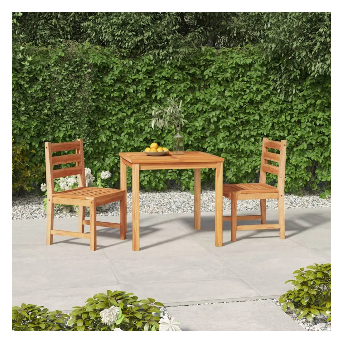 Cet ensemble de salle à manger de jardin en bois, au design élégant et contemporain, est un excellent choix pour manger ou vous détendre dans le jardin. Bois de teck massif : le bois de teck massif est un matériau naturel magnifique. Il a été chevronné, séché au four, puis sablé finement pour lui donner une apparence très lisse. Le bois de teck est connu pour sa résistance exceptionnelle et sa résistance aux intempéries.Dessus de table robuste : cette table de repas vous offre un dessus de table robuste. Vous pouvez y placer vos collations, tes boissons et toutes vos décorations préférées.Caractéristique résistante à l'eau : grâce à sa caractéristique de résistance à l'eau et à son look classique, vous pouvez placer l'ensemble de meubles de jardin n'importe où autour de votre maison, que ce soit à l'intérieur ou à l'extérieur !Expérience d'assise confortable : chaque chaise de dîner est dotée d'un dossier, ce qui rend l'assise très confortable. Remarque :Chaque produit est livré avec un manuel de montage dans la boîte pour un montage facile.Afin de prolonger la durée de vie de votre mobilier d'extérieur, nous vous recommandons de le protéger avec une housse imperméable.