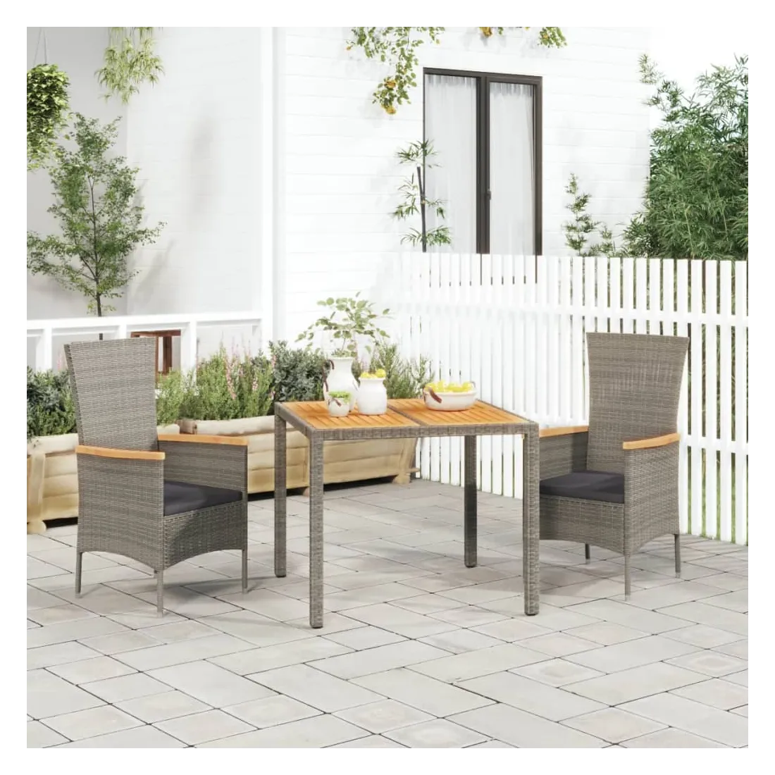 Cet ensemble de salle à manger de jardin tendance, au design élégant et contemporain, est un excellent choix pour manger ou vous détendre dans votre jardin. Matériau résistant aux intempéries : la résine tressée, également connue sous le nom de rotin poly, résiste aux intempéries et est facile à nettoyer. Elle reste belle à l'extérieur pendant une longue période. Elle offre une excellente qualité, commodité et un aspect esthétique.Cadre robuste : les cadres en acier enduit de poudre rendent l'ensemble de salle à manger d'extérieur robuste et stable pour une utilisation quotidienne à l'extérieur.Dessus de table pratique : le dessus de table robuste est parfait pour placer des repas, des boissons et d'autres objets décoratifs.Conception modulaire : l'ensemble de salle à manger de jardin est flexible et facile à déplacer, vous pouvez donc le combiner avec d'autres segments modulaires dans la boutique en ligne pour créer vos propres configurations d'ensemble de salle à manger de jardin !Expérience d'assise confortable : les coussins bien rembourrés offrent du confort pour votre temps d'assise. Bon à savoir :Pour faciliter au maximum le montage, chaque produit est livré avec des instructions. Remarque :Pour que vos meubles d'extérieur restent beaux, nous vous recommandons de les protéger avec une housse imperméable.
