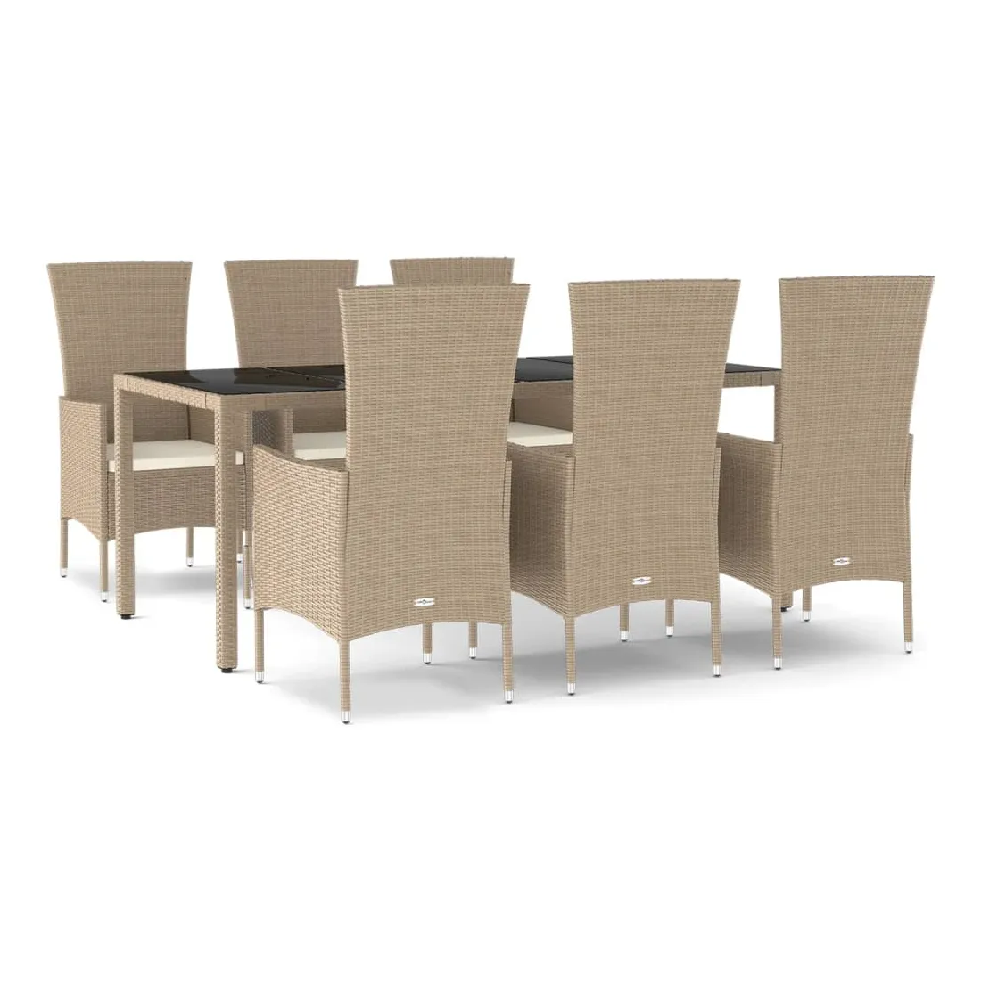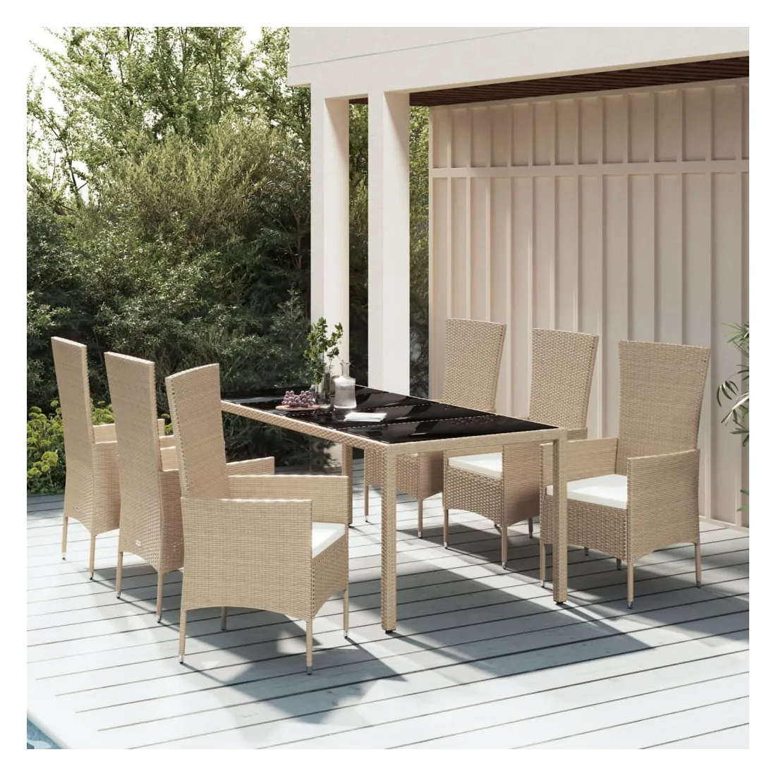 Cet ensemble de salle à manger de jardin tendance, au design élégant et contemporain, est un excellent choix pour manger ou vous détendre dans votre jardin. Matériau résistant aux intempéries : la résine tressée, également connue sous le nom de rotin poly, résiste aux intempéries et est facile à nettoyer. Elle reste belle à l'extérieur pendant une longue période. Elle offre une excellente qualité, commodité et un aspect esthétique.Cadre robuste : les cadres en acier enduit de poudre rendent l'ensemble de salle à manger d'extérieur robuste et stable pour une utilisation quotidienne à l'extérieur.Dessus de table pratique : le dessus de table robuste est parfait pour placer des repas, des boissons et d'autres objets décoratifs.Conception modulaire : l'ensemble de salle à manger de jardin est flexible et facile à déplacer, vous pouvez donc le combiner avec d'autres segments modulaires dans la boutique en ligne pour créer vos propres configurations d'ensemble de salle à manger de jardin !Expérience d'assise confortable : les coussins bien rembourrés offrent du confort pour votre temps d'assise. Bon à savoir :Pour faciliter au maximum le montage, chaque produit est livré avec des instructions. Remarque :Pour que vos meubles d'extérieur restent beaux, nous vous recommandons de les protéger avec une housse imperméable.