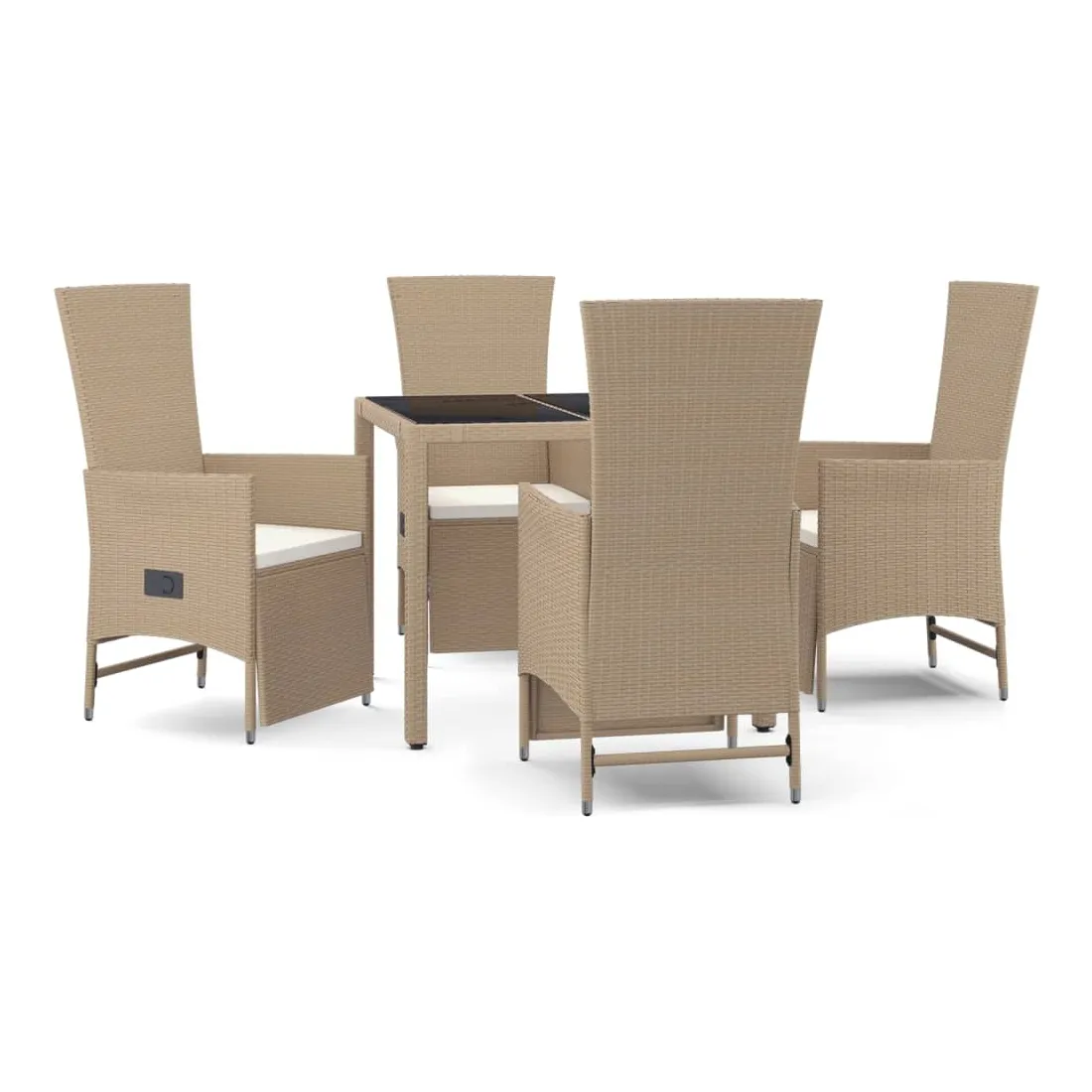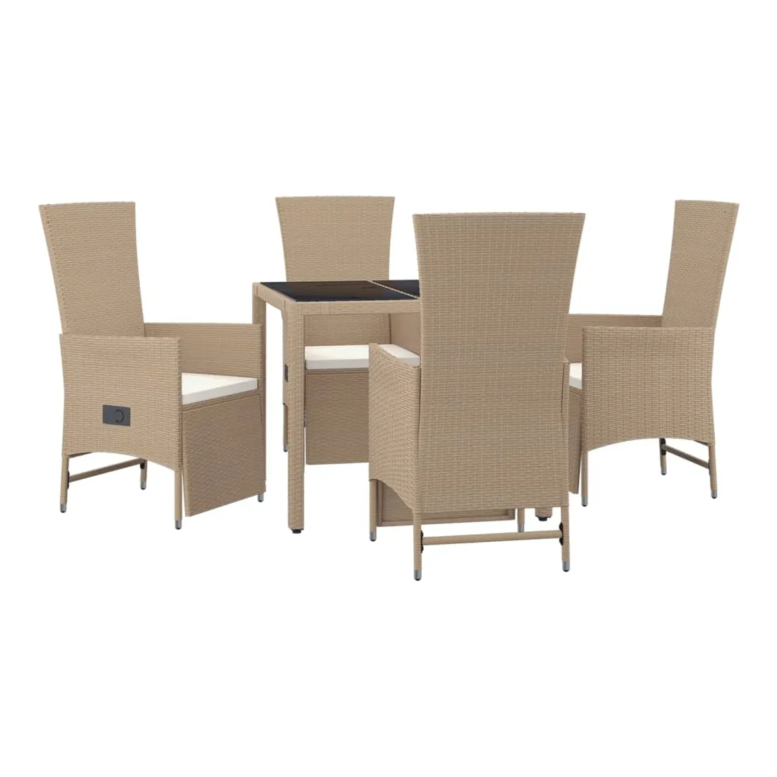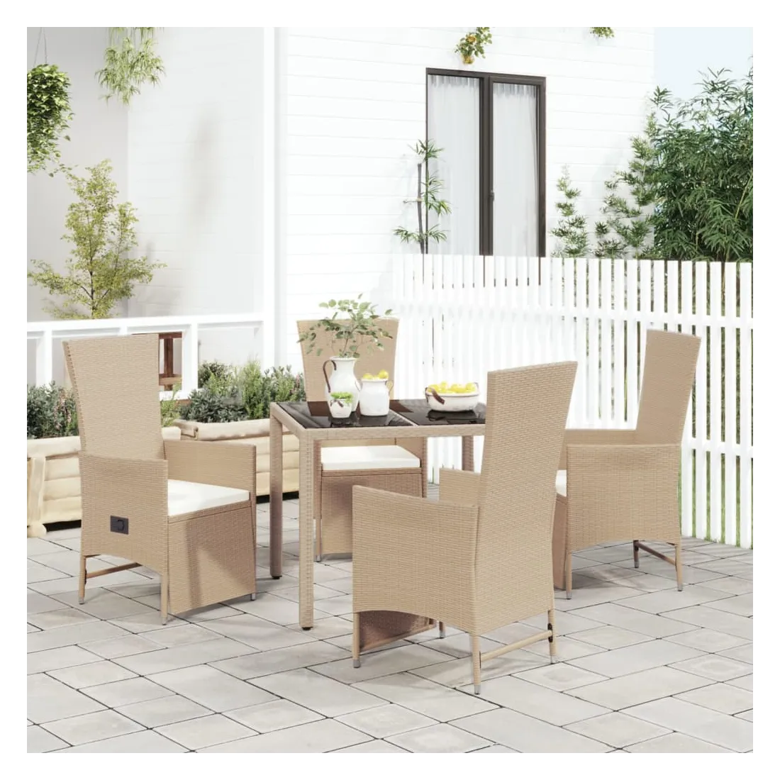 Cet ensemble de salle à manger de jardin tendance, au design élégant et contemporain, est un excellent choix pour manger ou vous détendre dans votre jardin. Matériau résistant aux intempéries : la résine tressée, également connue sous le nom de rotin poly, résiste aux intempéries et est facile à nettoyer. Elle reste belle à l'extérieur pendant une longue période. Elle offre une excellente qualité, commodité et un aspect esthétique.Cadre robuste : les cadres en acier enduit de poudre rendent l'ensemble de salle à manger d'extérieur robuste et stable pour une utilisation quotidienne à l'extérieur.Dessus de table pratique : le dessus de table robuste est parfait pour placer des repas, des boissons et d'autres objets décoratifs.Conception modulaire : l'ensemble de salle à manger de jardin est flexible et facile à déplacer, vous pouvez donc le combiner avec d'autres segments modulaires dans la boutique en ligne pour créer vos propres configurations d'ensemble de salle à manger de jardin !Fonction d'inclinaison : les chaises de jardin sont spécialement conçues avec une fonction d'inclinaison afin que vous puissiez régler le dossier et le repose-pied selon votre confort. Bon à savoir :Pour faciliter au maximum le montage, chaque produit est livré avec des instructions. Remarque :Pour que vos meubles d'extérieur restent beaux, nous vous recommandons de les protéger avec une housse imperméable.