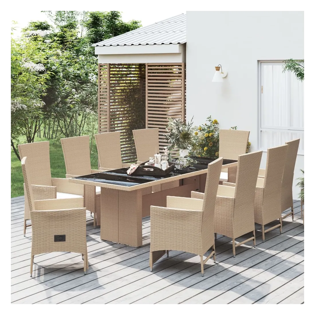 Cet ensemble de salle à manger de jardin tendance, au design élégant et contemporain, est un excellent choix pour manger ou vous détendre dans votre jardin. Matériau résistant aux intempéries : la résine tressée, également connue sous le nom de rotin poly, résiste aux intempéries et est facile à nettoyer. Elle reste belle à l'extérieur pendant une longue période. Elle offre une excellente qualité, commodité et un aspect esthétique.Cadre robuste : les cadres en acier enduit de poudre rendent l'ensemble de salle à manger d'extérieur robuste et stable pour une utilisation quotidienne à l'extérieur.Dessus de table pratique : le dessus de table robuste est parfait pour placer des repas, des boissons et d'autres objets décoratifs.Conception modulaire : l'ensemble de salle à manger de jardin est flexible et facile à déplacer, vous pouvez donc le combiner avec d'autres segments modulaires dans la boutique en ligne pour créer vos propres configurations d'ensemble de salle à manger de jardin !Fonction d'inclinaison : les chaises de jardin sont spécialement conçues avec une fonction d'inclinaison afin que vous puissiez régler le dossier et le repose-pied selon votre confort. Bon à savoir :Pour faciliter au maximum le montage, chaque produit est livré avec des instructions. Remarque :Pour que vos meubles d'extérieur restent beaux, nous vous recommandons de les protéger avec une housse imperméable.