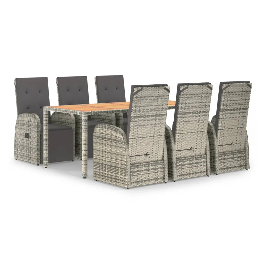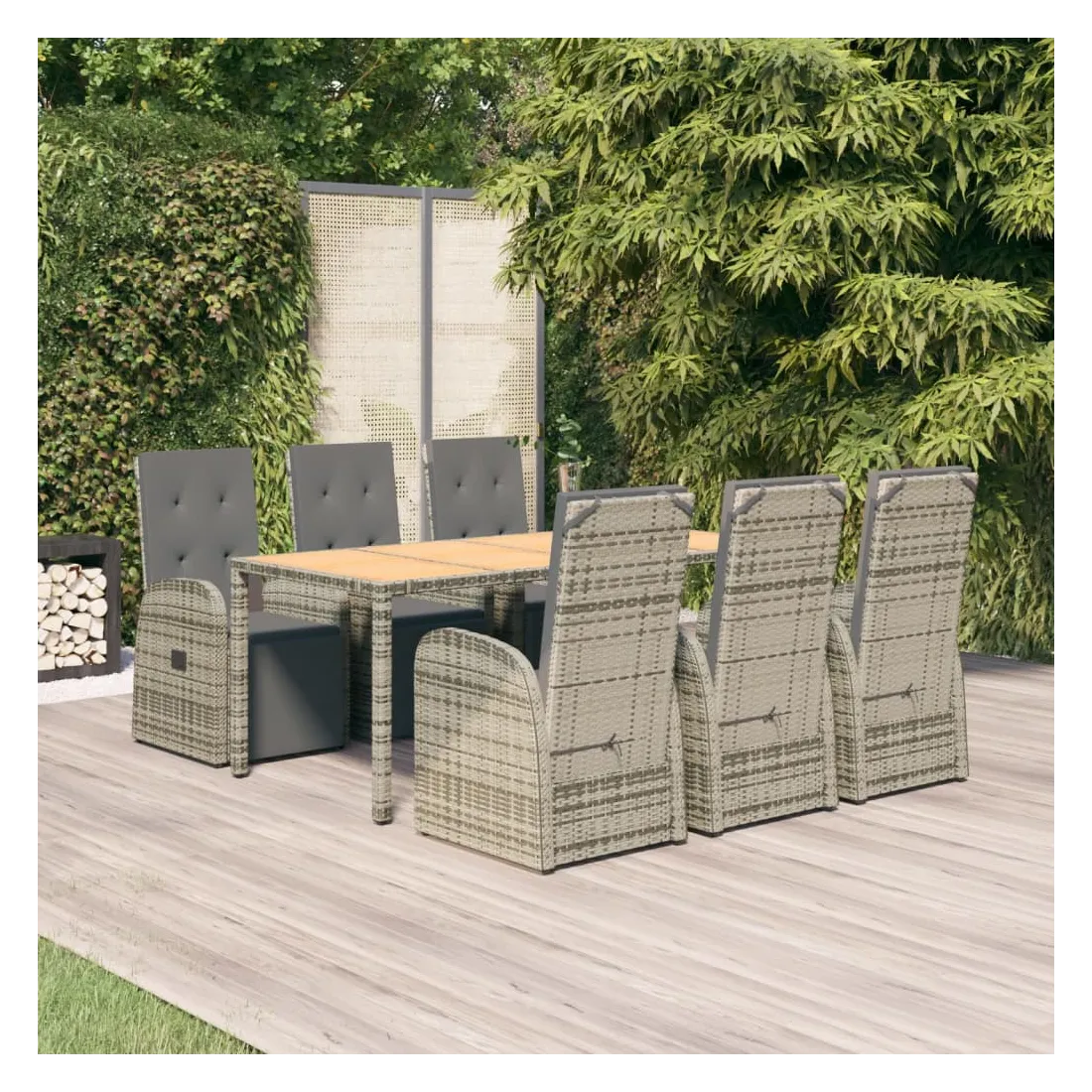 Cet ensemble de salle à manger de jardin tendance, au design élégant et contemporain, est un excellent choix pour manger ou vous détendre dans votre jardin. Matériau résistant aux intempéries : la résine tressée, également connue sous le nom de rotin poly, résiste aux intempéries et est facile à nettoyer. Elle reste belle à l'extérieur pendant une longue période. Elle offre une excellente qualité, commodité et un aspect esthétique.Cadre robuste : les cadres en acier enduit de poudre rendent l'ensemble de salle à manger d'extérieur robuste et stable pour une utilisation quotidienne à l'extérieur.Dessus de table pratique : le dessus de table robuste est parfait pour placer des repas, des boissons et d'autres objets décoratifs.Conception modulaire : l'ensemble de salle à manger de jardin est flexible et facile à déplacer, vous pouvez donc le combiner avec d'autres segments modulaires dans la boutique en ligne pour créer vos propres configurations d'ensemble de salle à manger de jardin !Fonction d'inclinaison : les chaises de jardin sont spécialement conçues avec une fonction d'inclinaison afin que vous puissiez régler le dossier et le repose-pied selon votre confort.Expérience d'assise confortable : le dossier ajoute un confort d'assise supplémentaire à la chaise de jardin. De plus, les coussins bien rembourrés vous permettent de vous asseoir confortablement. Bon à savoir :Pour faciliter au maximum le montage, chaque produit est livré avec des instructions. Remarque :Pour que vos meubles d'extérieur restent beaux, nous vous recommandons de les protéger avec une housse imperméable.