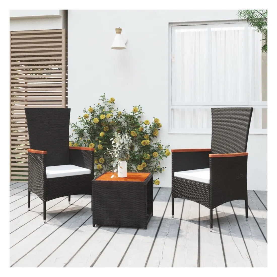 Ce salon de jardin, avec un design élégant et contemporain, sera un excellent choix pour vous détendre dans le jardin. Matériau durable : la résine tressée, également connue sous le nom de rotin poly, résiste aux intempéries et est facile à nettoyer. Elle reste belle à l'extérieur pendant une longue période. Elle offre une excellente qualité, commodité et un aspect esthétique.Cadre stable : l'acier est un matériau exceptionnellement dur et résistant. Il offre robustesse et stabilité.Expérience de siège confortable : avec les coussins de siège bien rembourrés, les chaises sont très confortables.Dessus de table pratique : le dessus en bois d'acacia massif est parfait pour placer ou afficher vos divers objets essentiels. Il est beau en apparence et facile à nettoyer. Remarque :Pour que vos meubles d'extérieur restent beaux, nous vous recommandons de les protéger avec une housse imperméable. Bon à savoir :Pour faciliter au maximum le montage, chaque produit est livré avec des instructions.