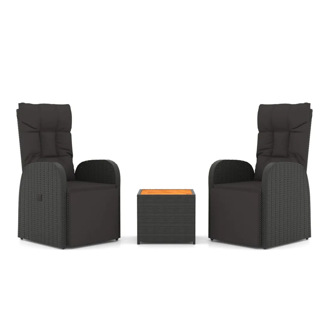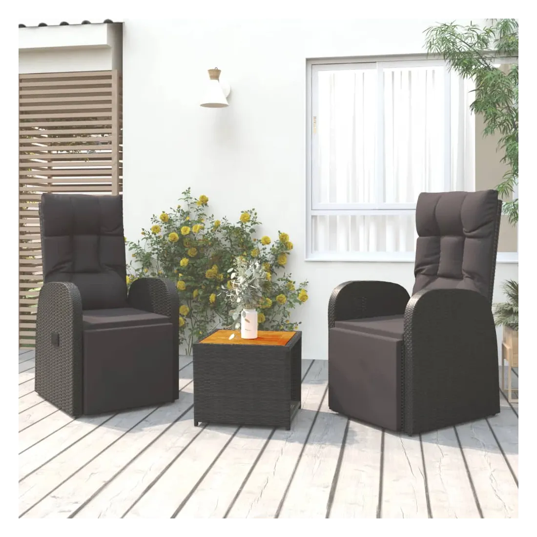 Ce salon de jardin, avec un design élégant et contemporain, sera un excellent choix pour vous détendre dans le jardin. Matériau durable : la résine tressée, également connue sous le nom de rotin poly, résiste aux intempéries et est facile à nettoyer. Elle reste belle à l'extérieur pendant une longue période. Elle offre une excellente qualité, commodité et un aspect esthétique.Cadre stable : l'acier est un matériau exceptionnellement dur et résistant. Il offre robustesse et stabilité.Fonction d'inclinaison : les chaises de jardin de cet ensemble de mobilier de jardin sont spécialement conçues avec une fonction d'inclinaison afin que vous puissiez régler le dossier et le repose-pied selon votre confort.Expérience de siège confortable : avec les coussins de siège bien rembourrés, les chaises sont très confortables.Dessus de table pratique : le dessus en bois d'acacia massif est parfait pour placer ou afficher vos divers objets essentiels. Il est beau en apparence et facile à nettoyer. Remarque :Pour que vos meubles d'extérieur restent beaux, nous vous recommandons de les protéger avec une housse imperméable. Bon à savoir :Pour faciliter au maximum le montage, chaque produit est livré avec des instructions.