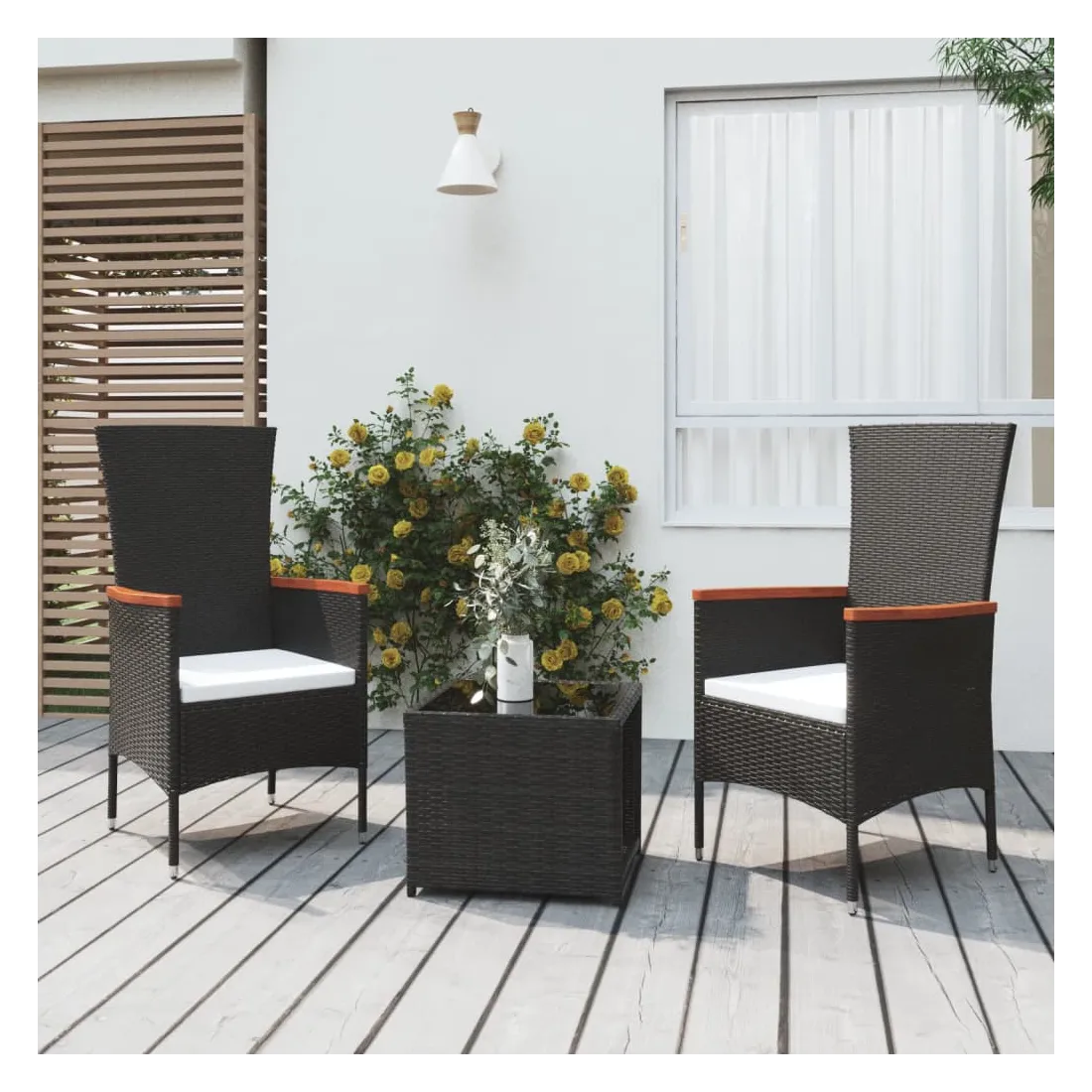 Ce salon de jardin, avec un design élégant et contemporain, sera un excellent choix pour vous détendre dans le jardin. Matériau durable : la résine tressée, également connue sous le nom de rotin poly, résiste aux intempéries et est facile à nettoyer. Elle reste belle à l'extérieur pendant une longue période. Elle offre une excellente qualité, commodité et un aspect esthétique.Cadre stable : l'acier est un matériau exceptionnellement dur et résistant. Il offre robustesse et stabilité.Expérience de siège confortable : avec les coussins de siège bien rembourrés, les chaises sont très confortables.Dessus de table pratique : le dessus en verre trempé est parfait pour placer ou afficher vos divers objets essentiels. Il est beau en apparence et facile à nettoyer. Remarque :Pour que vos meubles d'extérieur restent beaux, nous vous recommandons de les protéger avec une housse imperméable. Bon à savoir :Pour faciliter au maximum le montage, chaque produit est livré avec des instructions.
