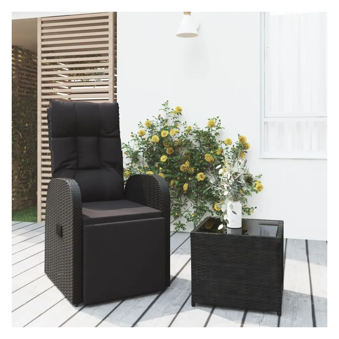 Ce salon de jardin, avec un design élégant et contemporain, sera un excellent choix pour vous détendre dans le jardin. Matériau durable : la résine tressée, également connue sous le nom de rotin poly, résiste aux intempéries et est facile à nettoyer. Elle reste belle à l'extérieur pendant une longue période. Elle offre une excellente qualité, commodité et un aspect esthétique.Cadre stable : l'acier est un matériau exceptionnellement dur et résistant. Il offre robustesse et stabilité.Fonction d'inclinaison : la chaise de jardin est spécialement conçue avec une fonction d'inclinaison afin que vous puissiez régler le dossier et le repose-pied selon votre confort.Expérience de siège confortable : avec les coussins de siège bien rembourrés, la chaise est très confortable.Dessus de table pratique : le dessus en verre trempé est parfait pour placer ou afficher vos divers objets essentiels. Il est beau en apparence et facile à nettoyer. Remarque :Pour que vos meubles d'extérieur restent beaux, nous vous recommandons de les protéger avec une housse imperméable. Bon à savoir :Pour faciliter au maximum le montage, chaque produit est livré avec des instructions.