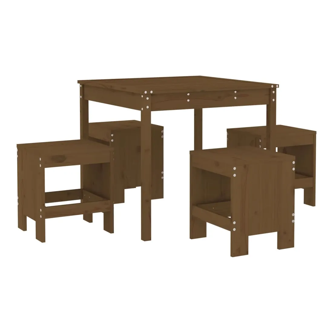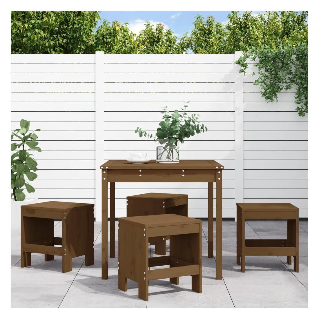 Cet ensemble de salle à manger en bois au design simple est un excellent choix pour manger ou vous détendre dans votre espace extérieur ! Bois de pin massif : cet ensemble de salle à manger est fabriqué en bois de pin massif. Le bois de pin solide est un beau matériau naturel. Le bois de pin a un grain droit et les nœuds donnent au matériau son aspect caractéristique et rustique.Dessus robuste : la table à dîner de l'ensemble à dîner d'extérieur est dotée d'un dessus robuste, parfait pour placer vos boissons, aliments et autres objets décoratifs.Design pratique : ces tabourets de jardin en bois n'ont pas de dossier, vous pouvez donc vous asseoir confortablement de chaque côté des tabourets et les ranger sous le comptoir lorsqu'ils ne sont pas utilisés.Nombreuses applications : avec son design minimaliste, l'ensemble à dîner de terrasse peut être intégré dans n'importe quel coin du jardin, terrasse, balcon, jardin, etc. Bon à savoir :Pour que vos meubles d'extérieur restent beaux, nous vous recommandons de les protéger avec une housse imperméable.