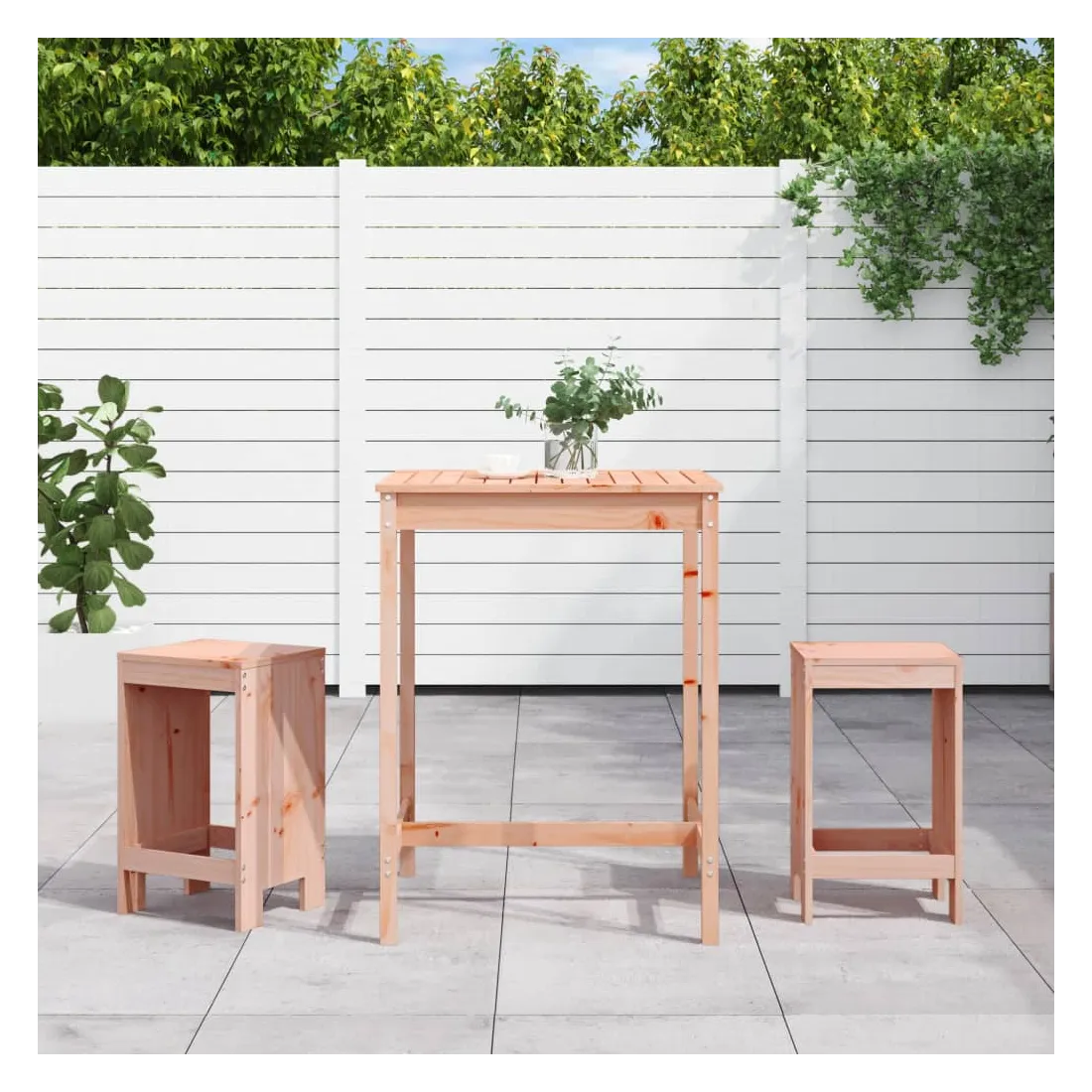 Prenez une gorgée de votre boisson préférée ou profitez d'un bon repas avec votre famille et vos amis autour de cet ensemble de bar de jardin en bois ! Bois de Douglas massif : cet ensemble de bar est fabriqué en bois de Douglas massif. Le bois de Douglas massif est un bois très durable qui fonctionne bien à l'extérieur. Le bois de Douglas est également assez solide pour l'utiliser avec un minimum de soins, même sous l'influence des intempéries.Dessus robuste : la table de bar de l'ensemble de pub est dotée d'un dessus robuste, parfait pour placer vos boissons, vos aliments et autres objets décoratifs.Design pratique : ces tabourets de bar en bois n'ont pas de dossier, vous pouvez donc vous asseoir confortablement de chaque côté des tabourets et les ranger sous le comptoir lorsqu'ils ne sont pas utilisés.Nombreuses applications : avec son design minimaliste, l'ensemble de bar de terrasse peut être intégré dans n'importe quel coin du jardin, terrasse, balcon, jardin, etc. Bon à savoir :Pour que vos meubles d'extérieur restent beaux, nous vous recommandons de les protéger avec une housse imperméable.