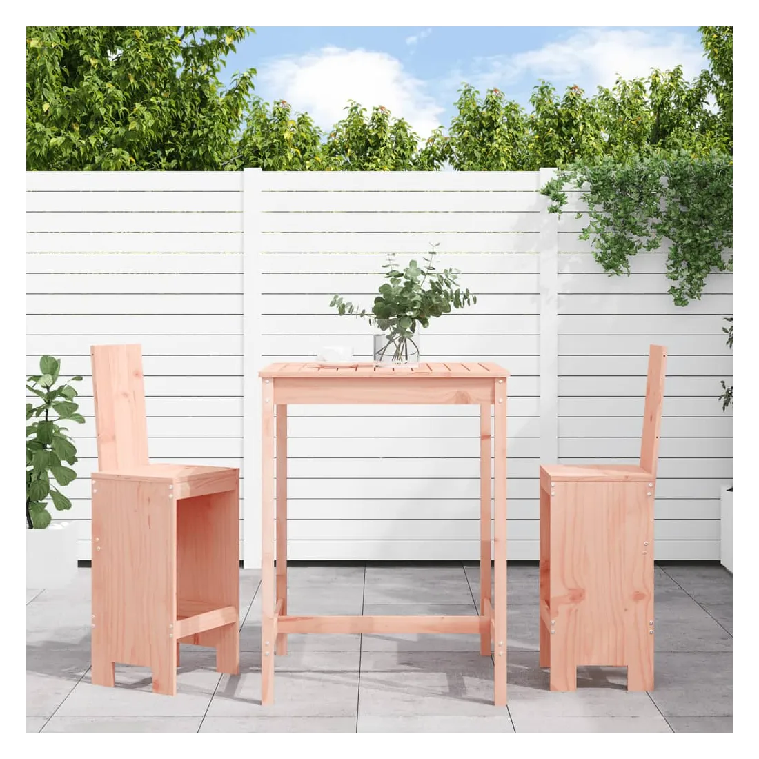 Prenez une gorgée de votre boisson préférée ou profitez d'un bon repas avec votre famille et vos amis autour de cet ensemble de bar de jardin en bois ! Bois de Douglas massif : cet ensemble de bar est fabriqué en bois de Douglas massif. Le bois de Douglas massif est un bois très durable qui fonctionne bien à l'extérieur. Le bois de Douglas est également assez solide pour l'utiliser avec un minimum de soins, même sous l'influence des intempéries.Dessus robuste : la table de bar de l'ensemble de pub est dotée d'un dessus robuste, parfait pour placer vos boissons, vos aliments et autres objets décoratifs.Assise confortable : le dossier et le repose-pieds du tabouret de bar en bois offrent une assise confortable pour détendre votre dos et vos jambes.Nombreuses applications : avec son design minimaliste, l'ensemble de bar de terrasse peut être intégré dans n'importe quel coin du jardin, terrasse, balcon, jardin, etc. Bon à savoir :Pour que vos meubles d'extérieur restent beaux, nous vous recommandons de les protéger avec une housse imperméable.