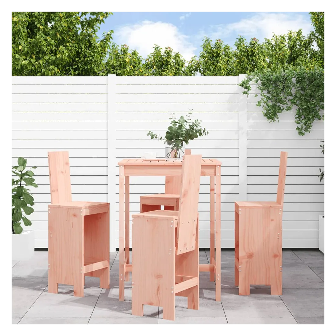 Prenez une gorgée de votre boisson préférée ou profitez d'un bon repas avec votre famille et vos amis autour de cet ensemble de bar de jardin en bois ! Bois de Douglas massif : cet ensemble de bar est fabriqué en bois de Douglas massif. Le bois de Douglas massif est un bois très durable qui fonctionne bien à l'extérieur. Le bois de Douglas est également assez solide pour l'utiliser avec un minimum de soins, même sous l'influence des intempéries.Dessus robuste : la table de bar de l'ensemble de pub est dotée d'un dessus robuste, parfait pour placer vos boissons, vos aliments et autres objets décoratifs.Assise confortable : le dossier et le repose-pieds du tabouret de bar en bois offrent une assise confortable pour détendre votre dos et vos jambes.Nombreuses applications : avec son design minimaliste, l'ensemble de bar de terrasse peut être intégré dans n'importe quel coin du jardin, terrasse, balcon, jardin, etc. Bon à savoir :Pour que vos meubles d'extérieur restent beaux, nous vous recommandons de les protéger avec une housse imperméable.
