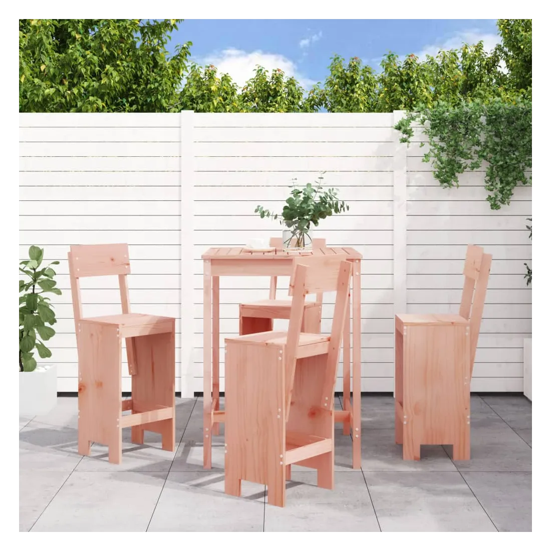 Prenez une gorgée de votre boisson préférée ou profitez d'un bon repas avec votre famille et vos amis autour de cet ensemble de bar de jardin en bois ! Bois de Douglas massif : cet ensemble de bar est fabriqué en bois de Douglas massif. Le bois de Douglas massif est un bois très durable qui fonctionne bien à l'extérieur. Le bois de Douglas est également assez solide pour l'utiliser avec un minimum de soins, même sous l'influence des intempéries.Dessus robuste : la table de bar de l'ensemble de pub est dotée d'un dessus robuste, parfait pour placer vos boissons, vos aliments et autres objets décoratifs.Assise confortable : le dossier et le repose-pieds du tabouret de bar en bois offrent une assise confortable pour détendre votre dos et vos jambes.Nombreuses applications : avec son design minimaliste, l'ensemble de bar de terrasse peut être intégré dans n'importe quel coin du jardin, terrasse, balcon, jardin, etc. Bon à savoir :Pour que vos meubles d'extérieur restent beaux, nous vous recommandons de les protéger avec une housse imperméable.
