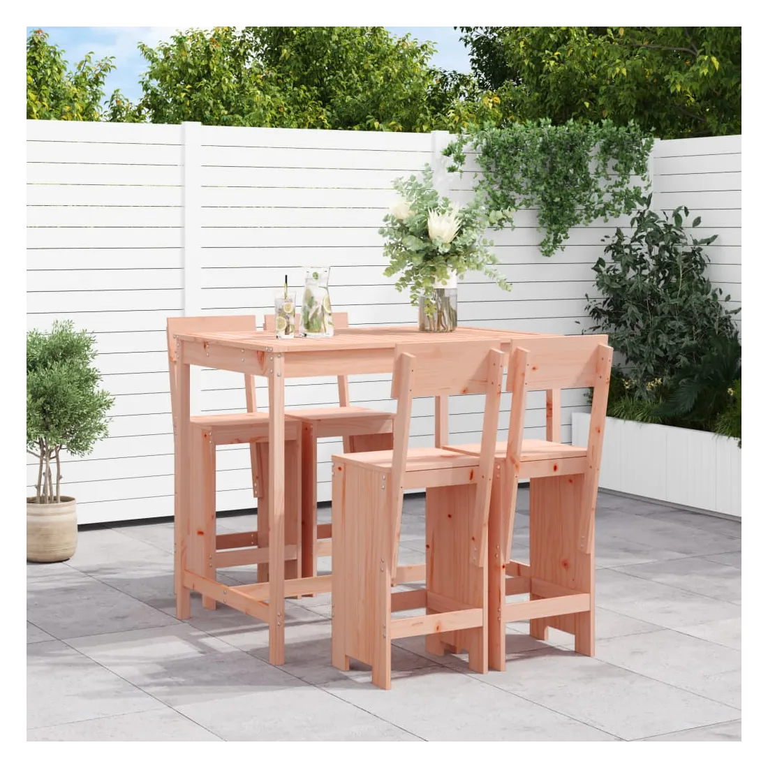 Prenez une gorgée de votre boisson préférée ou profitez d'un bon repas avec votre famille et vos amis autour de cet ensemble de bar de jardin en bois ! Bois de Douglas massif : cet ensemble de bar est fabriqué en bois de Douglas massif. Le bois de Douglas massif est un bois très durable qui fonctionne bien à l'extérieur. Le bois de Douglas est également assez solide pour l'utiliser avec un minimum de soins, même sous l'influence des intempéries.Dessus robuste : la table de bar de l'ensemble de pub est dotée d'un dessus robuste, parfait pour placer vos boissons, vos aliments et autres objets décoratifs.Assise confortable : le dossier et le repose-pieds du tabouret de bar en bois offrent une assise confortable pour détendre votre dos et vos jambes.Nombreuses applications : avec son design minimaliste, l'ensemble de bar de terrasse peut être intégré dans n'importe quel coin du jardin, terrasse, balcon, jardin, etc. Bon à savoir :Pour que vos meubles d'extérieur restent beaux, nous vous recommandons de les protéger avec une housse imperméable.