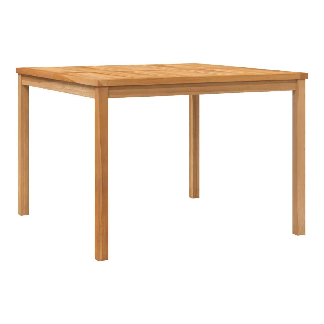 vidaXLProfitez d'un bon repas ou d'un thé l'après-midi dans votre espace extérieur avec cet ensemble à manger de jardin en bois ! Bois de teck massif : le bois de teck massif est un matériau naturel magnifique. Il a été chevronné, séché au four, puis sablé finement pour lui donner une apparence très lisse. Le bois de teck est connu pour sa résistance exceptionnelle et sa résistance aux intempéries.Dessus de table pratique : le dessus de table robuste de la table à manger permet de placer des collations, des paniers de fruits, des objets décoratifs et d'autres objets nécessaires.Assise confortable : le dossier et les accoudoirs assurent une assise confortable à votre fauteuil de jardin.Fonction empilable : la chaise à manger est empilable pour économiser de l'espace lorsqu'elle n'est pas utilisée.Surface facile à nettoyer : la surface lisse rend l'ensemble de meubles de jardin facile à nettoyer avec un chiffon humide. Bon à savoir :Pour que vos meubles d'extérieur restent beaux, nous vous recommandons de les protéger avec une housse imperméable.