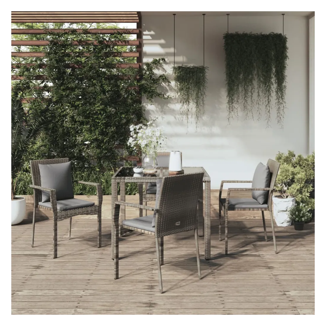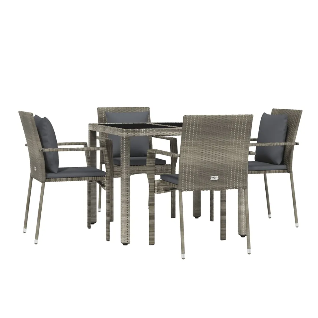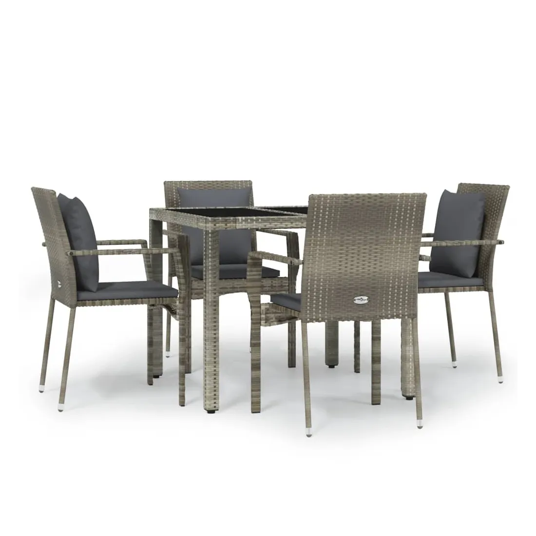 Ensemble à manger de jardin 5 pcs coussins gris résine tressée