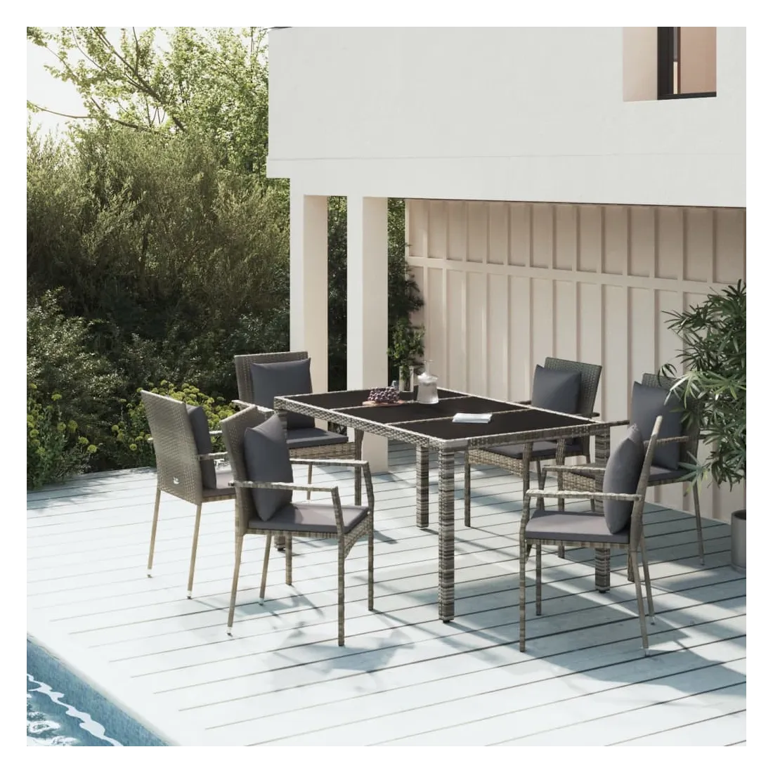 Cet ensemble de salle à manger de jardin tendance, au design élégant et contemporain, est un excellent choix pour manger ou vous détendre dans votre jardin. Matériau résistant aux intempéries : la résine tressée, également connue sous le nom de rotin poly, résiste aux intempéries et est facile à nettoyer. Elle reste belle à l'extérieur pendant une longue période. Elle offre une excellente qualité, commodité et un aspect esthétique.Cadre robuste : les cadres en acier enduit de poudre rendent l'ensemble de salle à manger d'extérieur robuste et stable pour une utilisation quotidienne à l'extérieur.Dessus de table pratique : le dessus de table en bois d'acacia massif est parfait pour placer des boissons, des aliments et des décorations. Il a une belle apparence et est facile à nettoyer.Conception modulaire : l'ensemble de salle à manger de jardin est flexible et facile à déplacer, vous pouvez donc le combiner avec d'autres segments modulaires dans la boutique en ligne pour créer vos propres configurations d'ensemble de salle à manger de jardin !Expérience d'assise confortable : le dossier ajoute un confort d'assise supplémentaire à la chaise de jardin. De plus, les coussins bien rembourrés vous permettent de vous asseoir confortablement. Bon à savoir :Pour faciliter au maximum le montage, chaque produit est livré avec des instructions. Remarque :Pour que vos meubles d'extérieur restent beaux, nous vous recommandons de les protéger avec une housse imperméable.