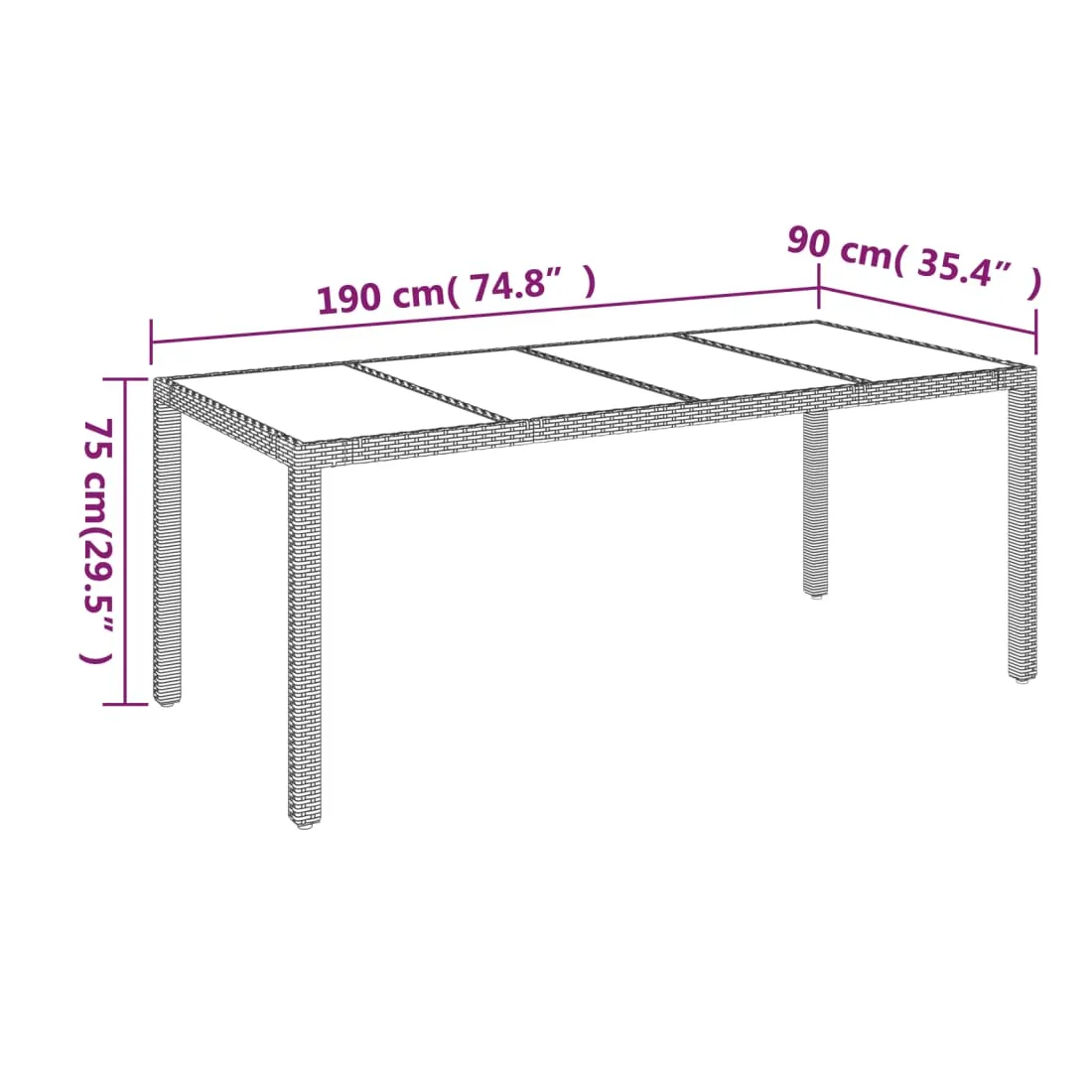 - Dimensions : 190 x 90 x 75 cm (l x P x H)