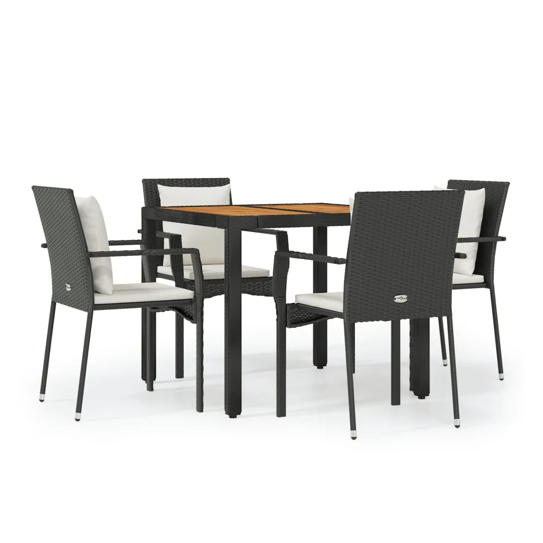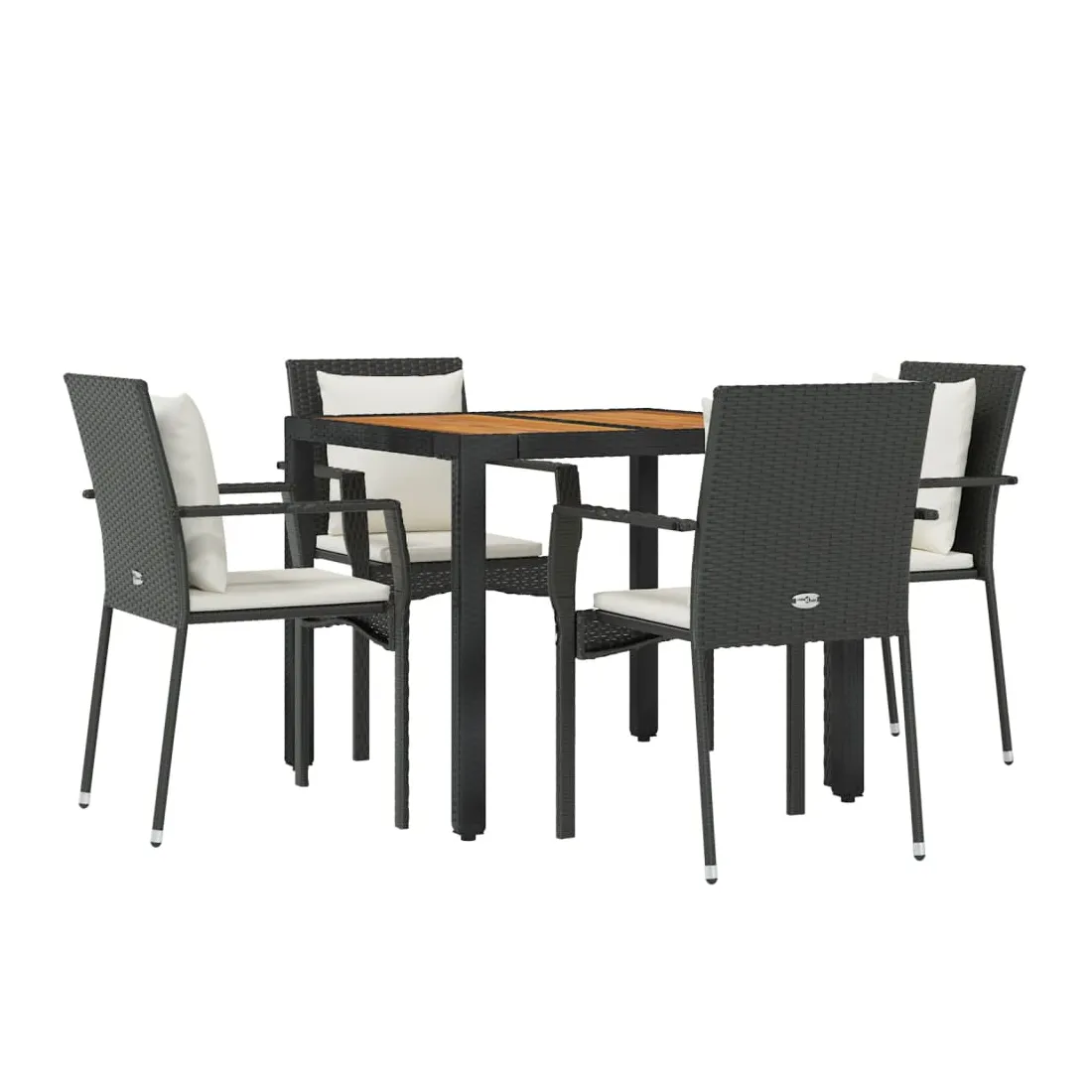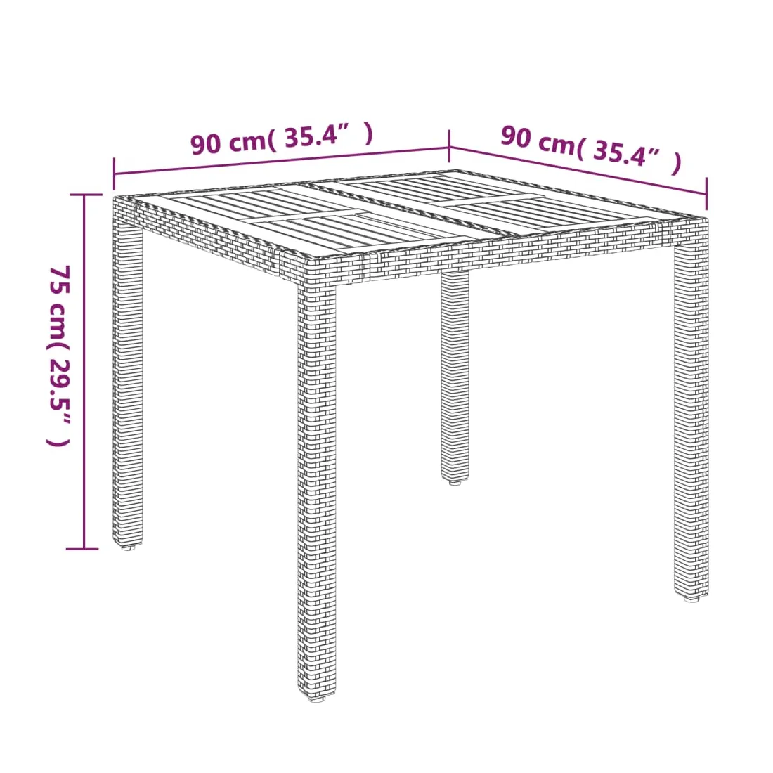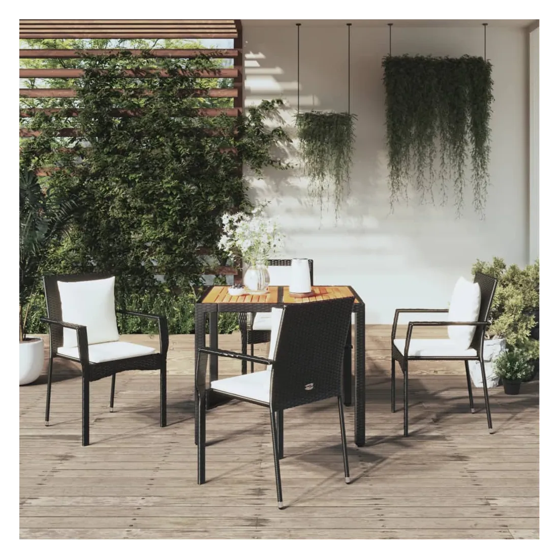 Cet ensemble de salle à manger de jardin tendance, au design élégant et contemporain, est un excellent choix pour manger ou vous détendre dans votre jardin. Matériau résistant aux intempéries : la résine tressée, également connue sous le nom de rotin poly, résiste aux intempéries et est facile à nettoyer. Elle reste belle à l'extérieur pendant une longue période. Elle offre une excellente qualité, commodité et un aspect esthétique.Cadre robuste : les cadres en acier enduit de poudre rendent l'ensemble de salle à manger d'extérieur robuste et stable pour une utilisation quotidienne à l'extérieur.Dessus de table pratique : le dessus de table en bois d'acacia massif est parfait pour placer des boissons, des aliments et des décorations. Il a une belle apparence et est facile à nettoyer.Conception modulaire : l'ensemble de salle à manger de jardin est flexible et facile à déplacer, vous pouvez donc le combiner avec d'autres segments modulaires dans la boutique en ligne pour créer vos propres configurations d'ensemble de salle à manger de jardin !Expérience d'assise confortable : le dossier ajoute un confort d'assise supplémentaire à la chaise de jardin. De plus, les coussins bien rembourrés vous permettent de vous asseoir confortablement. Bon à savoir :Pour faciliter au maximum le montage, chaque produit est livré avec des instructions. Remarque :Pour que vos meubles d'extérieur restent beaux, nous vous recommandons de les protéger avec une housse imperméable.