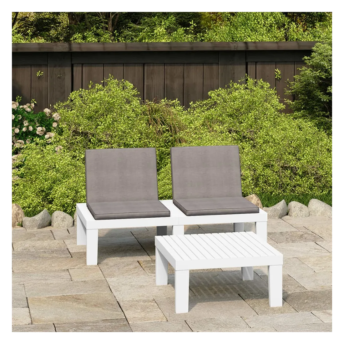 Ce salon de jardin est un excellent choix pour vous détendre et profiter du beau temps, faire une sieste ou discuter avec votre famille ou vos amis. L’ensemble de salon de jardin est en plastique, ce qui le rend facile à nettoyer et stable. Avec son dessus robuste, la table est idéale pour garder la nourriture et les boissons à portée de main. Le dossier et les coussins ajoutent au confort du banc.