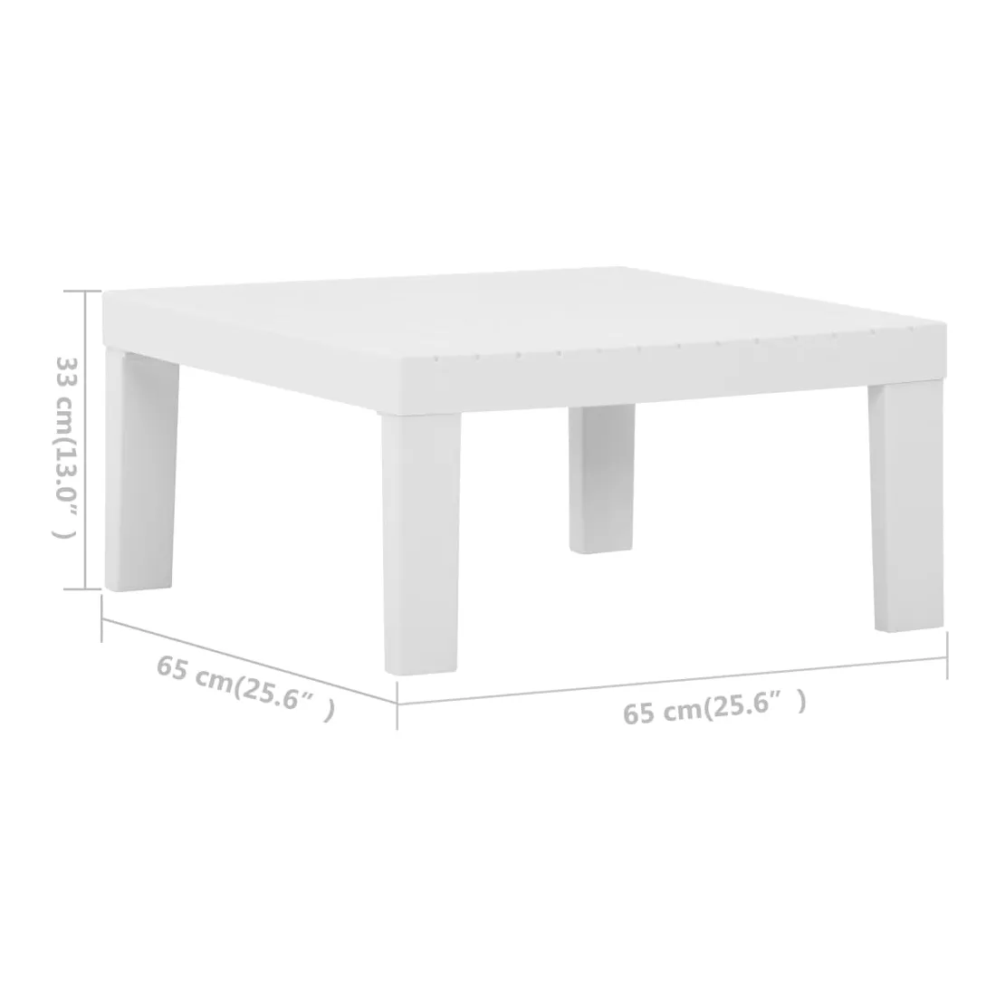 - Dimensions de la table : 65 x 65 x 33 cm (l x P x H)